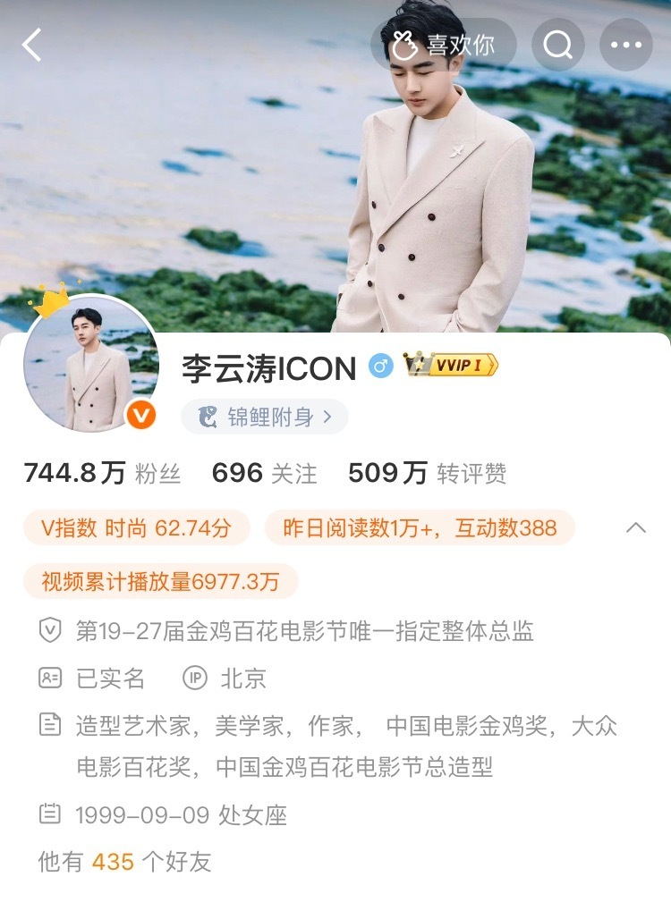 李云涛点赞梓渝 李云涛简介:身份:中国殿堂级造型艺术家、美学家、作家,是第19-27届金鸡百花电影节唯一指定整体造型总监,连续21届担任金鸡奖、百花奖总造型,被称为“金鸡造型第一人”。• 头衔:意大利KOEFIA国际学院教授、北京服装学院特聘教授、李云涛工作室创始人等,合作过数百位明星与品牌。