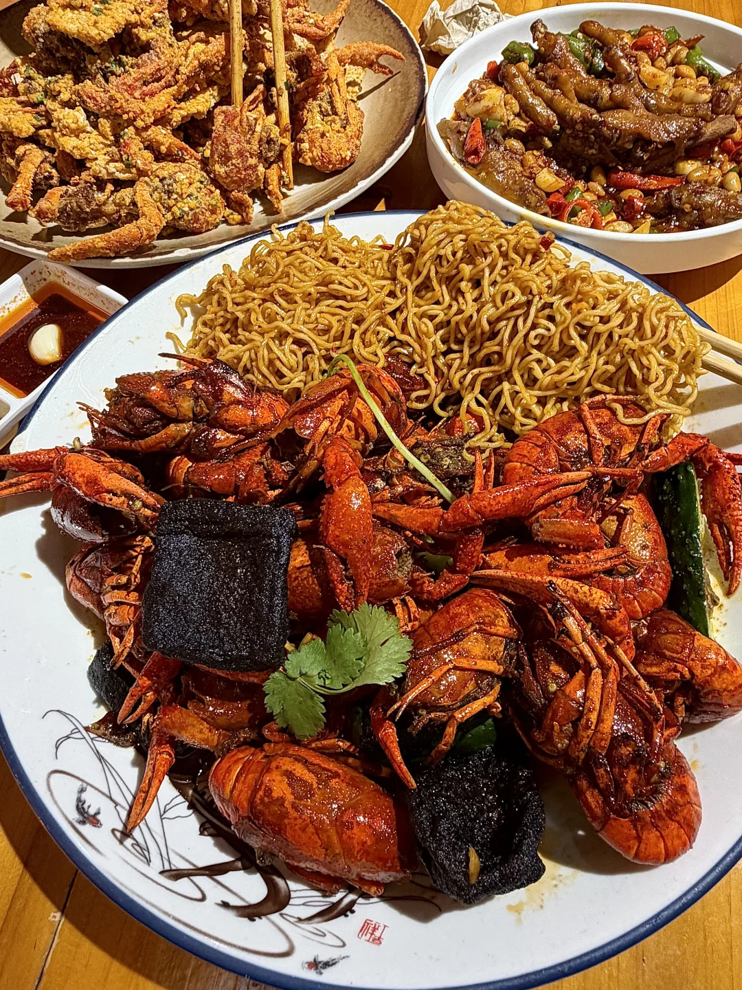 就在绳金塔附近!! 南昌本地朋友带我们去吃的20年小龙虾老店😭…… - ✔️干锅脆皖鱼片 还是第一次吃脆皖鱼🐟treetree的好神奇的口感!! ✔️溏心蛋炒面 香喷喷炒面🥹搭配流心蛋这谁吃了不迷糊!! ✔️口袋馍虾仁 酥脆口袋馍包上QQ弹弹小龙虾🦞口感层次嘎嘎丰富