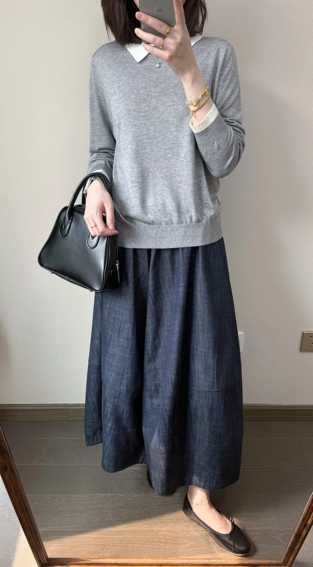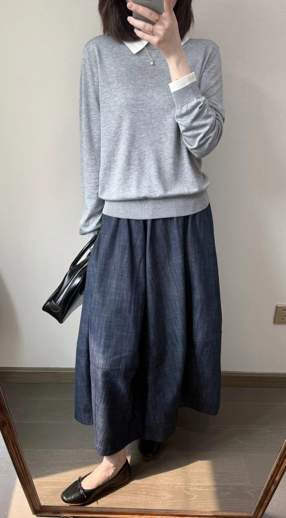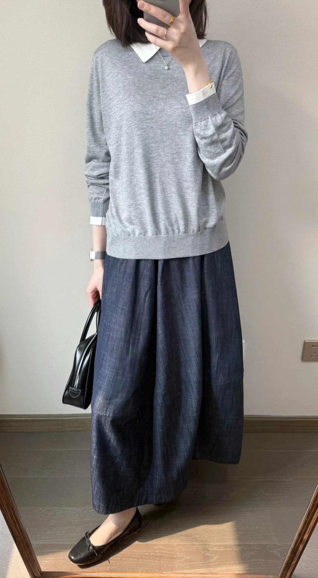 早春穿什么🍨/灰色针织和波点半裙