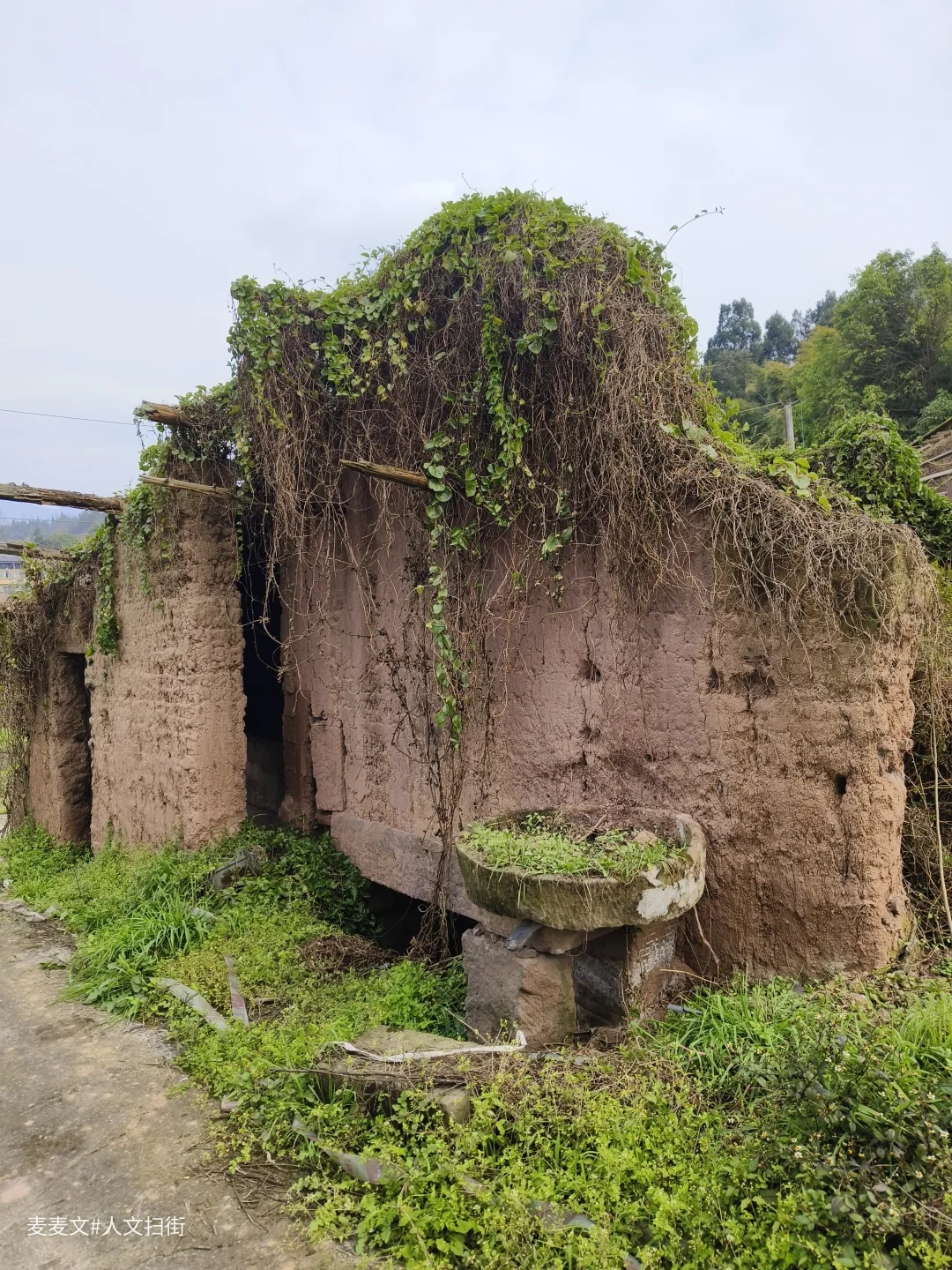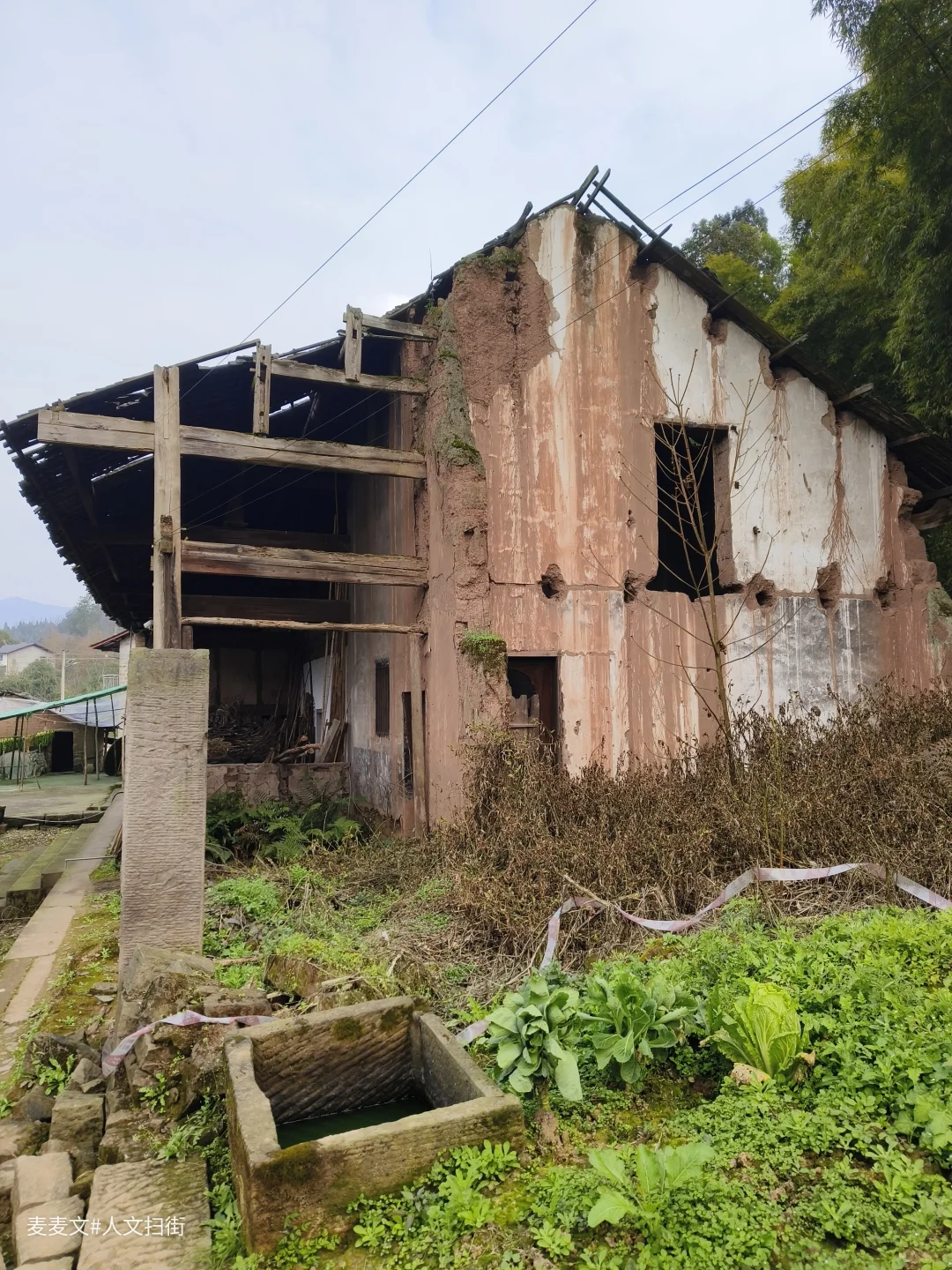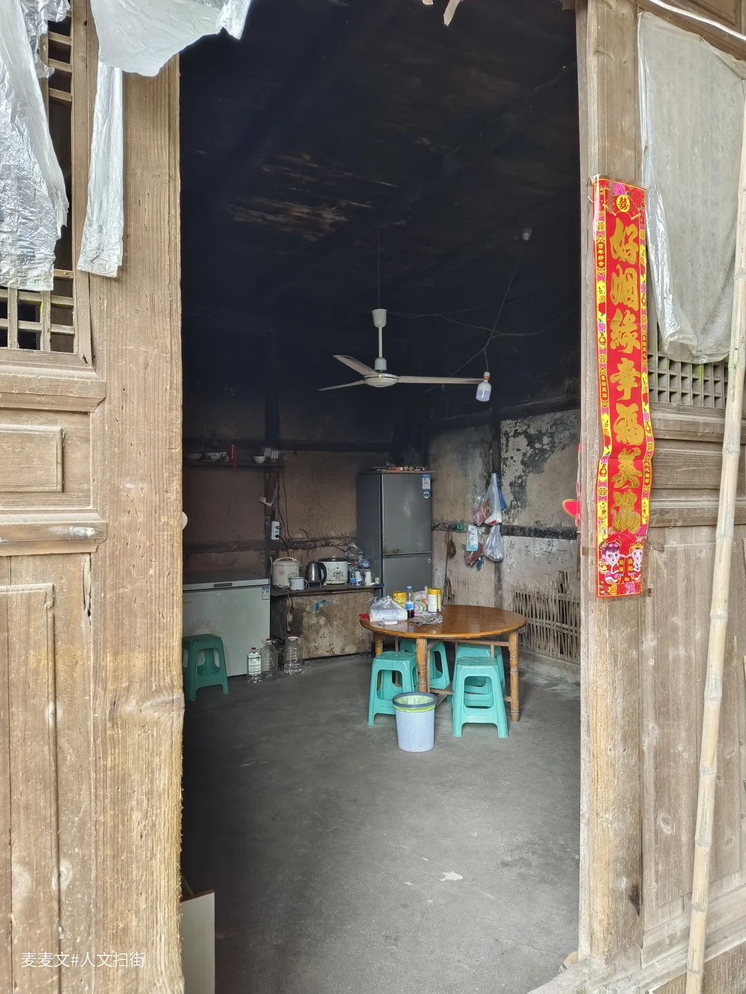 土夯墙斑驳,木梁架依旧挺立,屋檐下晾晒的青菜、门口的石缸,还在诉说着烟火日常。最动人的是墙上留存的旧时朱红标语,字迹虽有些模糊,却像时光邮戳,把不同年代的故事钉在了一起。