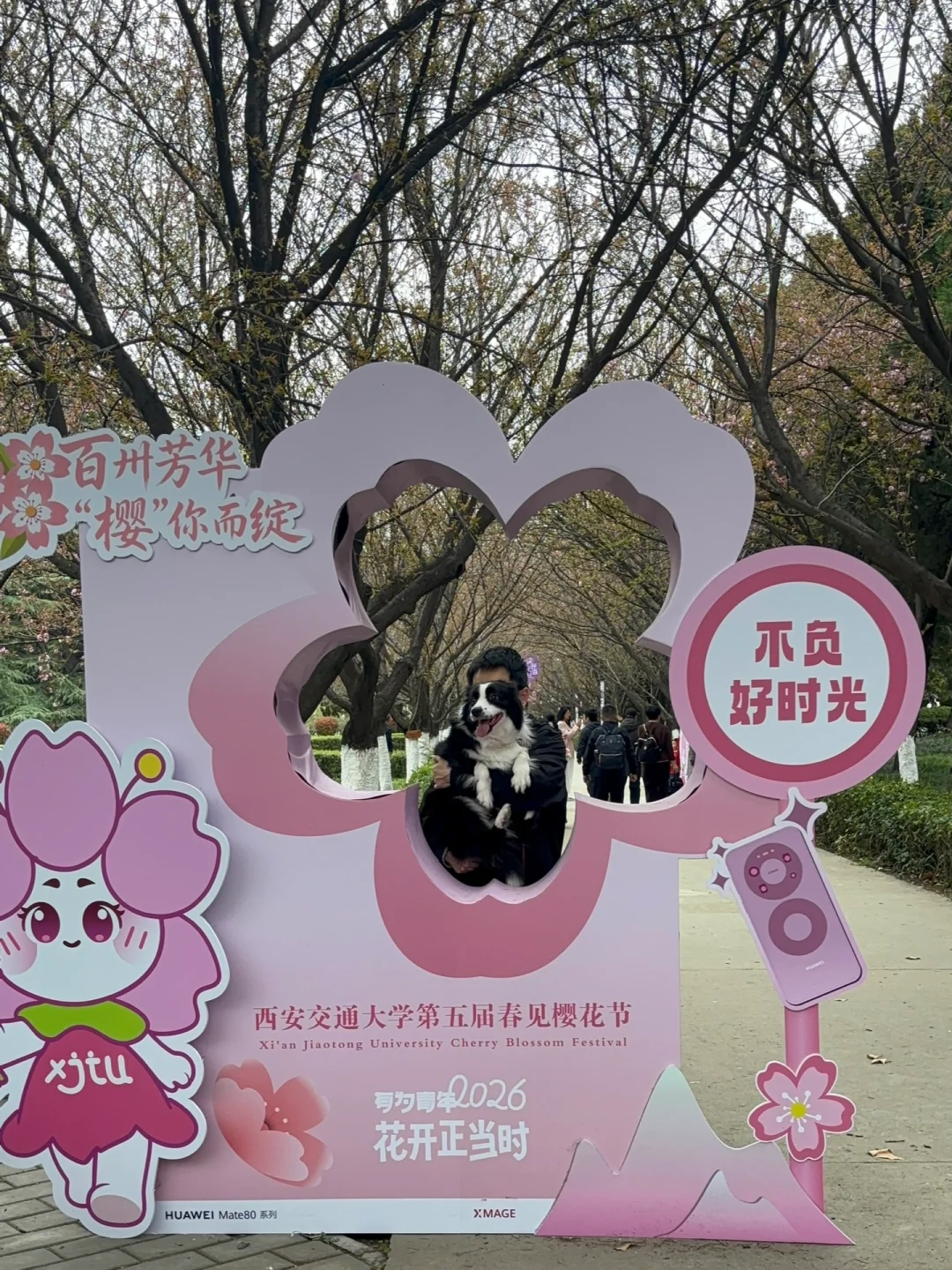 带着小狗去参加樱花节,没有看到往年盛开的大片樱花,但是拍到了可爱的照片!没有拍到正面的卡布达巨人,背面也很不错,小狗一屁股坐的很像人! 椰子没和樱妹会晤成功,那下次我替小狗去见见樱妹吧!椰子在路上要到了小姐姐的摸摸,狗的快乐get✅ 二十六分钟校内体验卡到期,我自己手忙脚乱没来得及拍摄很多东西,下次还是别偷感这么重的进来了!