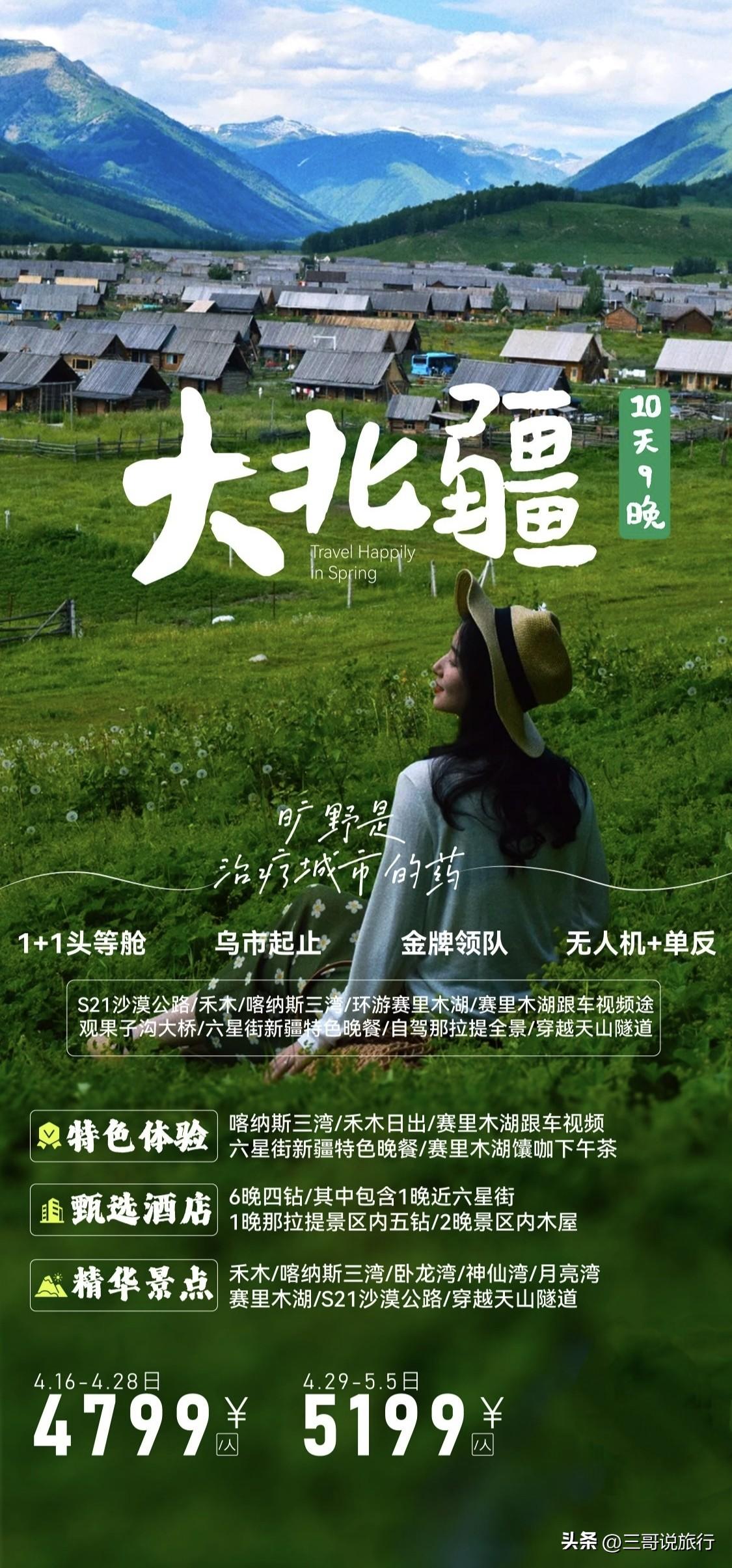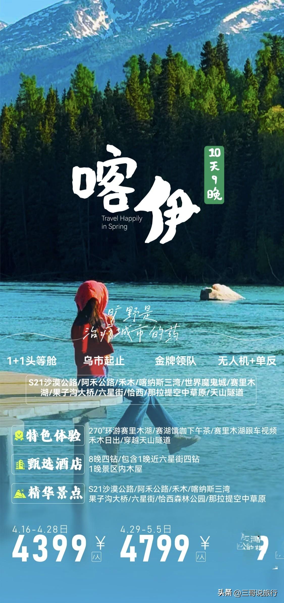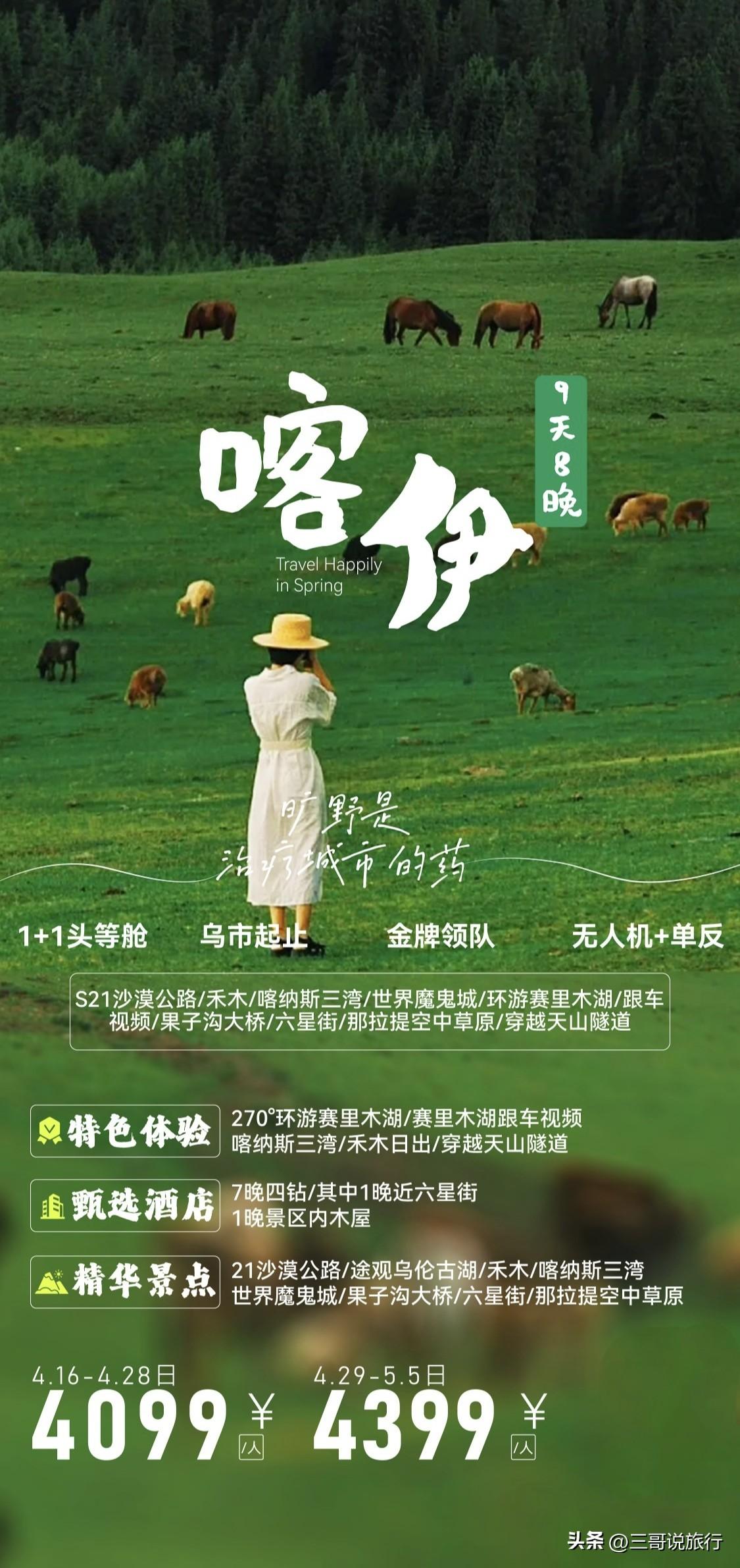嗨拼游·HAPPY游|2-6人小团,邂逅新疆最美春天 专属2-6人精品小团,拒绝人挤人,承包整个春天的浪漫! 淡季独享禾木晨雾与哈登日出,看图瓦木屋炊烟袅袅,与皑皑雪山同框,静谧又治愈。喀纳斯湖迎来半冰半湖奇观,蓝冰裂纹与碧绿湖水相映,三湾晨雾缭绕,宛如水墨仙境。 更有一年仅开十几天的野杏花盛宴,吐尔根、大西沟漫山粉白杏花盛放,背靠雪山肆意绽放,随手一拍都是壁纸级美景。 在赛里木湖邂逅独一份的浪漫,打卡特色馕咖下午茶,还能收获专属跟车视频,车窗框住万顷蓝湖,追风赴春,氛围感拉满。暮色降临,围坐草原享用花城夜宴,晚风伴着肉香,解锁新疆独有的温柔与惬意。 这个春天,和有趣的人一起,奔赴喀伊绝美春色!