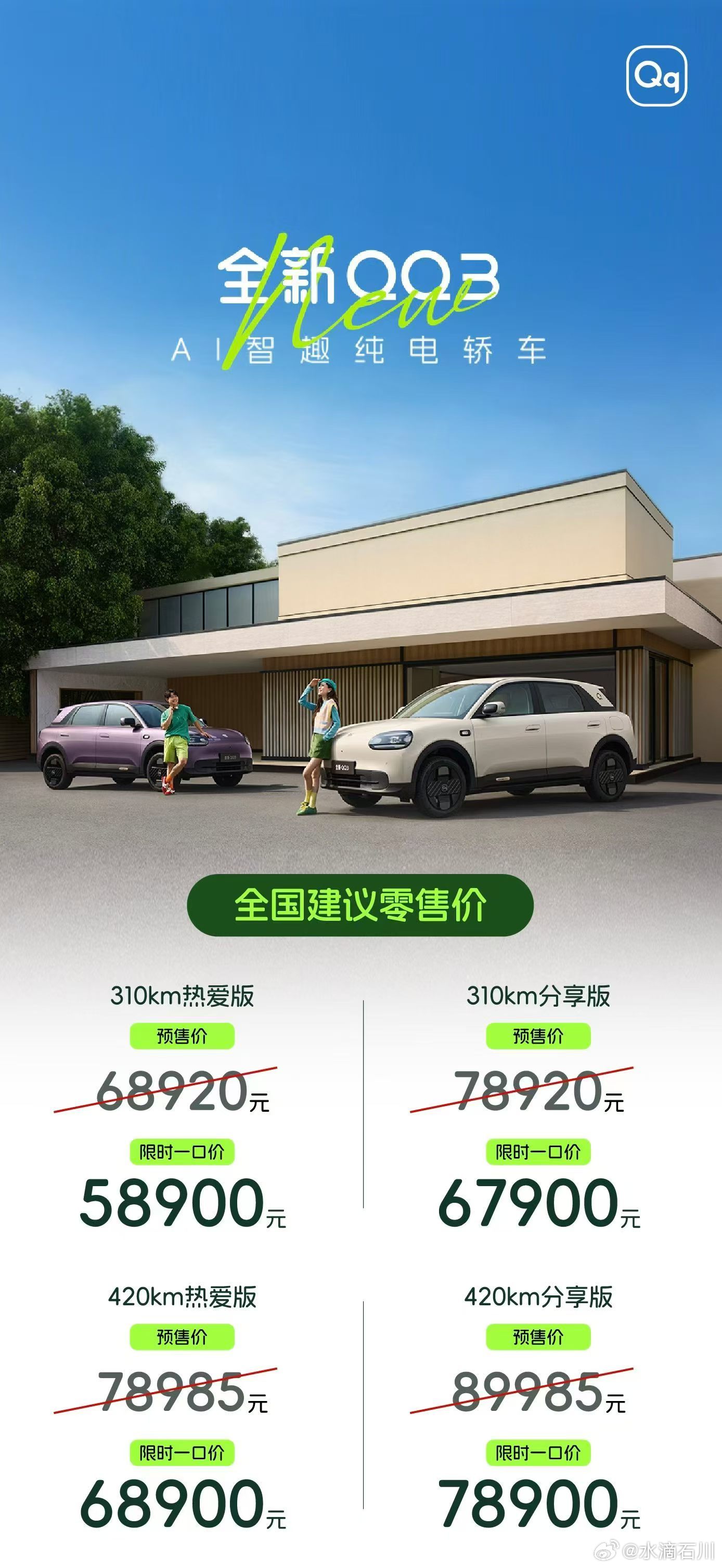 全新qq3上市王者归来一部到位1.四款车型普遍比预售便宜了一万块左右2.420