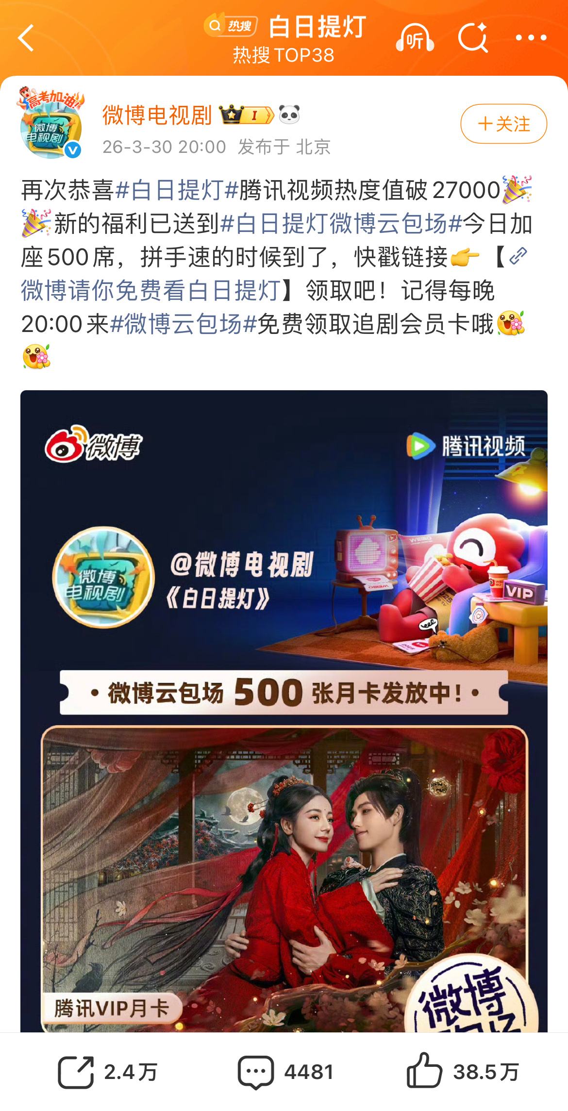 官方发的迪丽热巴白日提灯战报被杨紫粉丝评论全占了