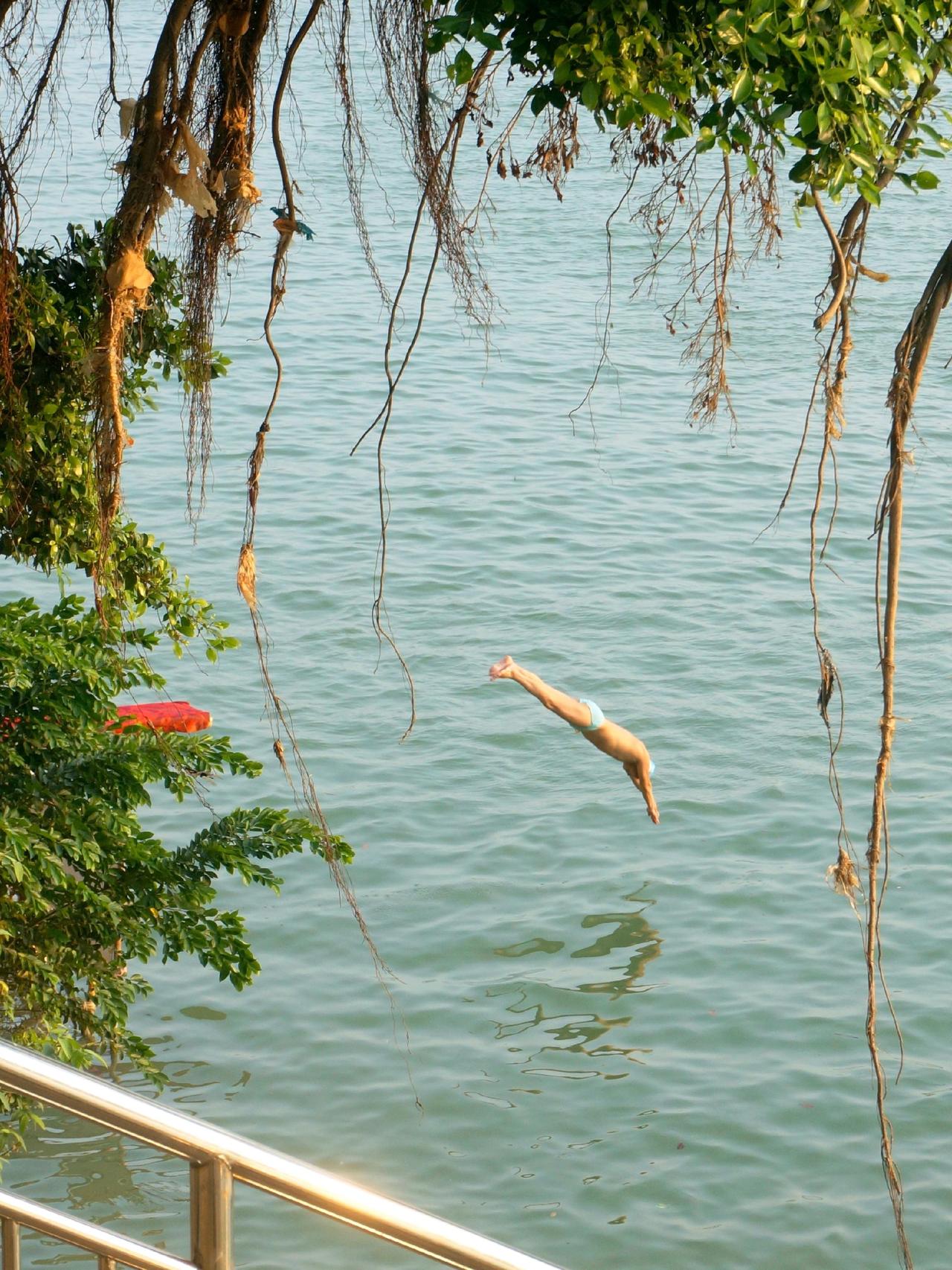 下午到邕江走一走,钓鱼佬不少,游泳的人也不少,不知道边上什么时候多了个跳水台,还挺多人在跳水游泳的。邕江 户外游泳