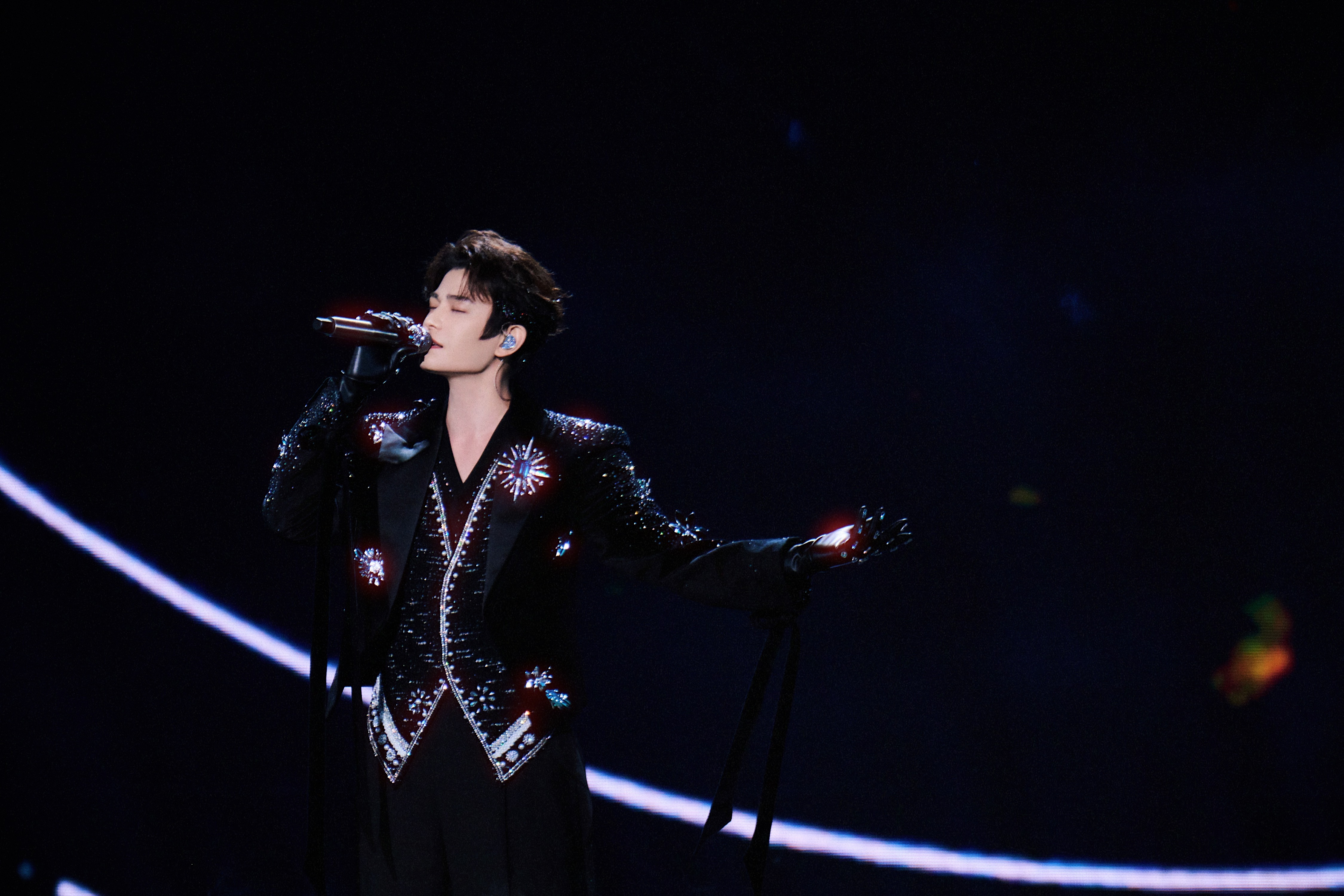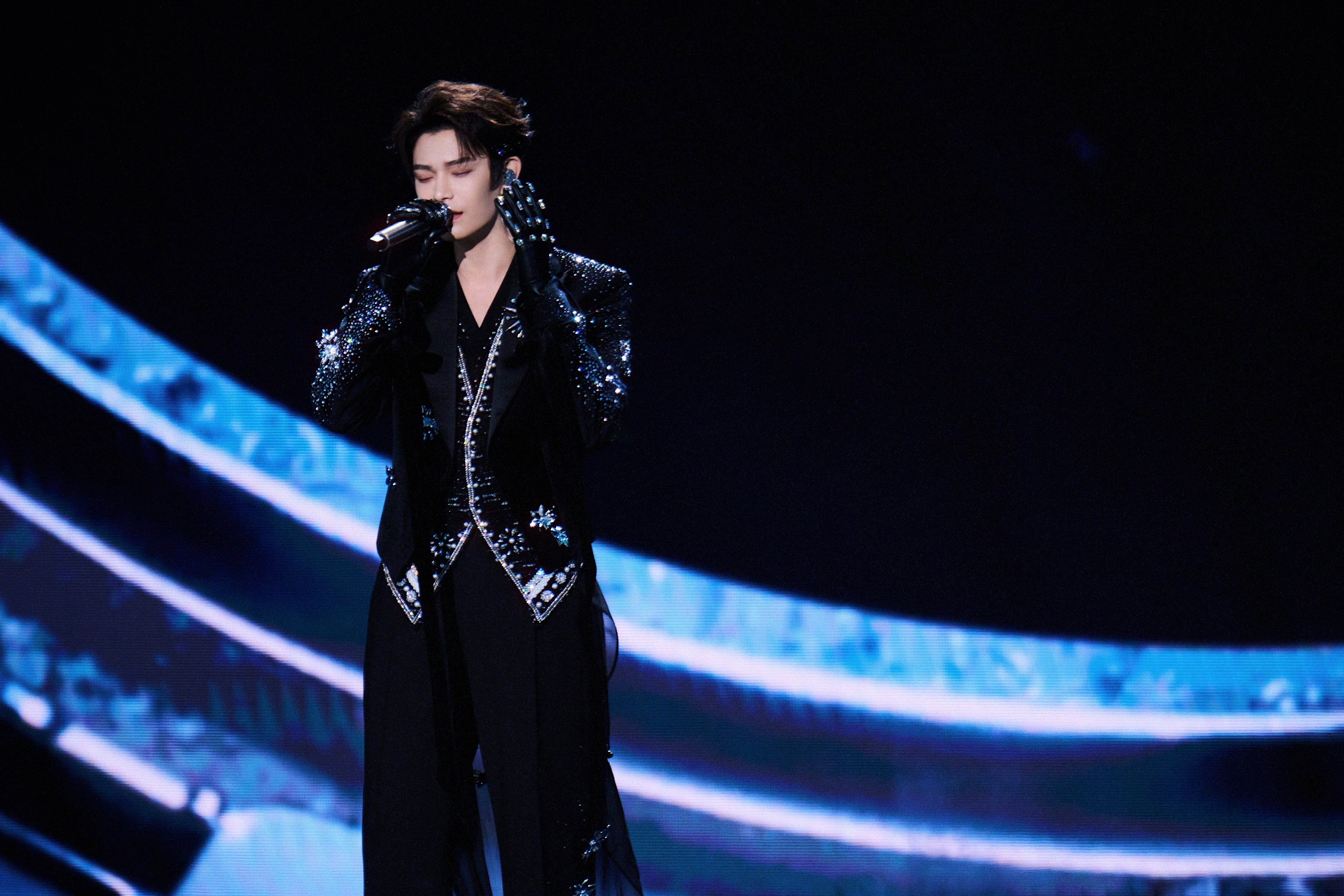 老凤祥全球代言人佩戴「星宇极光」海蓝宝钻石胸针亮相超级巅峰之夜舞台,由老凤祥首席设计师、国家级工艺美术大师特别定制,承载百年非遗金银细工工艺,光芒四射,闪耀璀璨星夜🌌💫