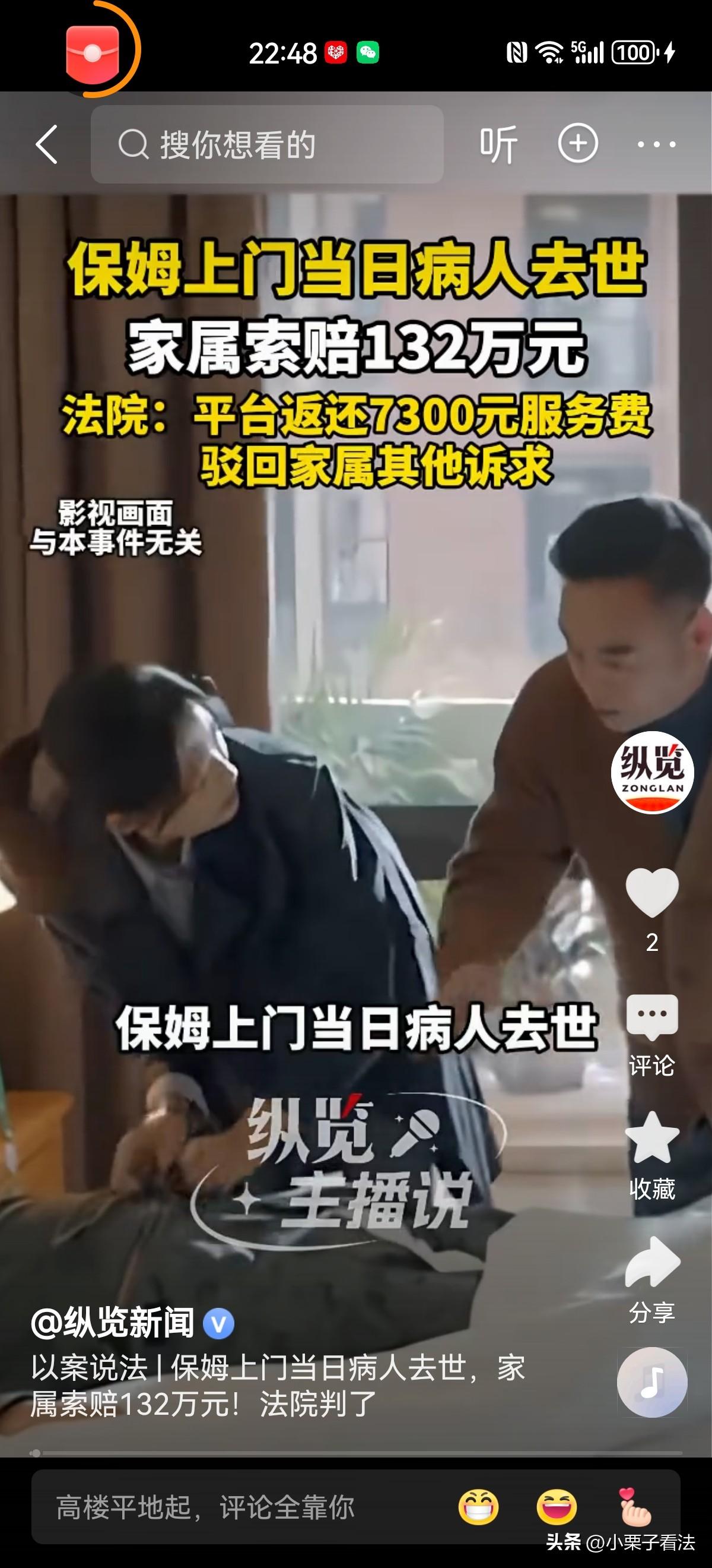 江苏淮安,一老人脑干出血,长期住院治疗,始终没好转。医院也没更好治疗方案,家属只能办理出院。当时老人仍处于昏迷状态,医院还让家属签下了风险自担的承诺书。3天后,家人照顾老人就心力憔悴,便在某家政平台聘请一住家保姆,约定负责打扫卫生、照顾老人的工作。谁知,保姆工作当天为老人进行擦洗和按摩身体后,老人下午就死了!家属悲痛欲绝,认为保姆未尽专业护理义务,平台推荐的服务人员不具备相应资质,怒将保姆及平台告上法庭,索要132.7万赔偿。法院判决出乎预料! 2024年5月,金某因脑干出血,在医院里熬了很长一段时间,多次治疗下来,病情始终没有好转,一直处于昏迷状态。 5月8日,金某病情危重,实在没有更好的治疗方案,只能办理出院回家。 出院时,医生反复叮嘱家属,病人情况极不乐观,转运和居家照料都有极大的生命危险,稍有不慎就可能出现意外,还让家属签下了风险自担的承诺书。 看着病床上毫无意识的亲人,金家人心里又疼又慌,满是无力感,却也只能接受现实,把人接回了家。 回家后的照料难题很快摆在眼前,金某一直昏迷,吃喝拉撒、身体擦洗都需要专人照看。 家里人既要忙生计,又要轮班守着病人,没几天就累得精疲力尽,个个心力交瘁。 实在撑不住的家属,想着找个住家保姆搭把手,帮忙打理日常、照看病人,能减轻点家里的负担。 5月11日,他们通过一家正规的家政服务平台,挑选了保姆尹某。 线上签合同时,明确写了服务内容是打扫卫生、照顾病人日常起居。 家属也痛快交了7300元的服务费,心里盼着保姆来了,能让家里的压力小一些。 谁也没想到,这场期盼,在尹某上门的第一天,就彻底碎了。 5月12日清晨,尹某准时来到金家。 她看着躺在床上毫无反应的病人,心里也有些发怵,但她还是按照流程,先给金某做了全身擦洗,又轻柔地进行肢体按摩。 这些都是她日常工作的范畴,动作规范、小心,生怕弄疼病人。 然而,就在当天下午,金某的生命体征突然急转直下,经抢救无效,不幸离世。 突如其来的丧亲之痛,让金家彻底乱了阵脚。 巨大的悲伤瞬间转化为愤怒与不解,他们无法接受亲人就这样在“照料”中离去。 在他们看来,要不是保姆没专业资质、操作不当,怎么会好好的人就没了? 他们将怒火一并撒向家政平台,认为平台没有尽到审核责任,推荐了不合格的服务人员。 于是,一场索赔132.7万元的官司,就此拉开序幕。 法庭上,双方争执得面红耳赤。 金家家属声泪俱下,哭诉着失去亲人的痛苦,坚称是对方的失职酿成悲剧。 尹某则委屈不已,反复强调自己只是做了合同约定的生活照料,从未做过任何违规操作。 家政平台也拿出证据,辩称自己已审核过尹某的资质,合同条款清晰,不存在过错。 法院审理认为,首先,双方合同明确约定服务范围是生活照料,而非医疗护理。 《民法典》第577条:当事人一方不履行合同义务或者履行合同义务不符合约定的,应当承担继续履行、采取补救措施或者赔偿损失等违约责任。 《民法典》第1165条第1款:行为人因过错侵害他人民事权益造成损害的,应当承担侵权责任 。 尹某仅做擦洗、按摩,属合同约定的生活照料,无医疗护理资质与义务,行为合法合规,无违法性。 无证据证明尹某操作不当、未尽合理注意义务;平台已审核资质、明确提示服务边界,无过错。 最关键的一点在于,金某出院时本就病情危重,医院已明确告知居家照料的巨大风险,家属也签署了承诺书。 他们将需要24小时专业医疗护理的重症患者,托付给了仅能提供生活照料的家政人员,这本身就未尽到审慎的选择义务。 家政服务合同中的“照顾病人”,通常指清洁、喂食、按摩等生活协助,绝不包含医疗诊断、病情评估、急救等专业医护行为。 普通家政人员没有专业资质,也不应承担超出其能力范围的医疗责任。两者之间清晰地划定了责任的红线。 最终法院判决:平台返还7300元服务费,驳回家属132万余元的赔偿请求。 家属对判决不服,提起上诉,二审法院依旧维持原判。 有人说,还能这样?要是在医院死那不得讹医院啊? 有人说,太过分了!除非有确切证据证明可以把保姆送进去的那种!才一天,就就想讹人一百多万? 还有人说,讹人应该讹多少,就反赔给被讹者多少。不能做坏事没任何损失啊!保姆应该反告这家人! 对此您怎么看?