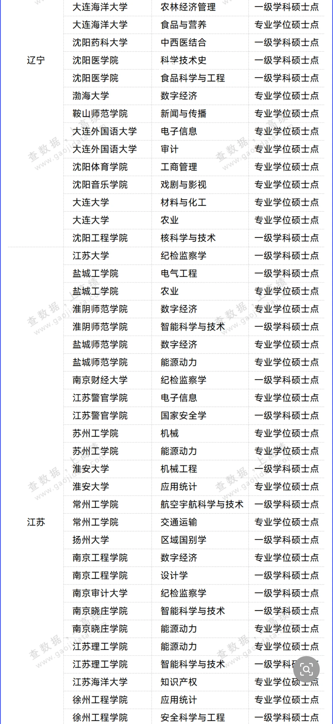 其中,沈阳工业大学拟增设5个硕士点,拟增设学位点数量最多;沈阳医学院、常州工学院、大连海洋大学、淮安大学等18所高校各拟增设2个硕士点;大连工业大学、江苏大学等33所高校分别增设1个硕士点。
