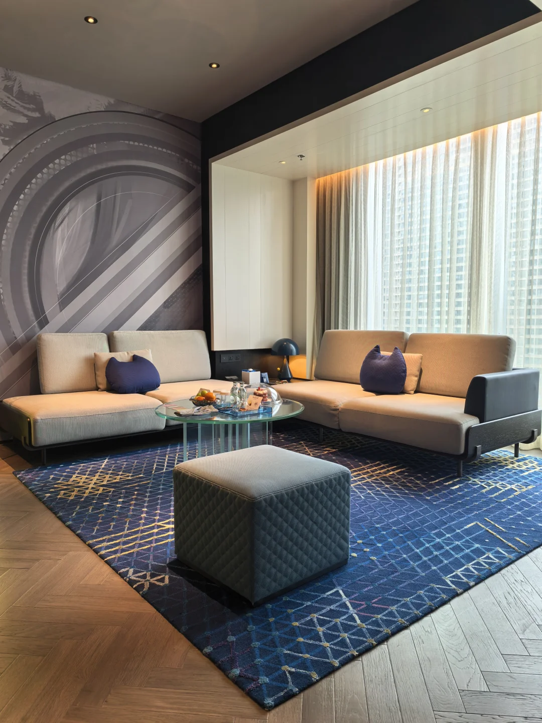 一进门我就跟朋友说:“昨天为什么要去住长沙威斯汀酒店?”这个客厅,真的太适合演唱会结束之后,朋友一起回来待着。空间是有“社交属性”的。