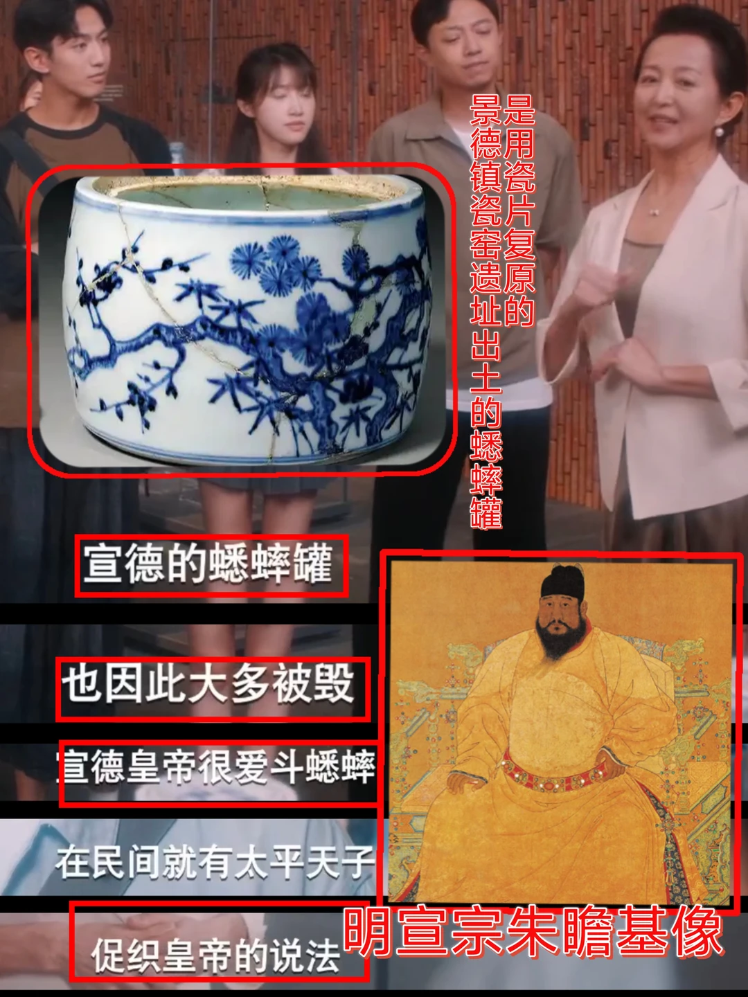 ✅我在大学修文物这部剧我是拿着笔记本看的,好多知识点! 1⃣️青花大龙缸,因缸多画云龙或青花而得名,储水、储粮、养鱼和陪葬用。 2⃣️促织皇帝 👑即明宣宗朱瞻基,“促织”是蟋蟀的别名,其在位期间因痴迷于斗蟋蟀,被人称为"促织天子”。 3⃣️高岭土,又称白云土,是烧制陶瓷的原料。 4⃣️唐三彩不只是陪葬品,因为除了在墓葬中,在寺庙和生活场所遗址也出土过唐三彩制品。 ✅目前只看了三集,就有这么多知识点。 ❗❗也没想到知识会以这种方式进入我的脑袋里! ❗❗追剧真能涨知识!