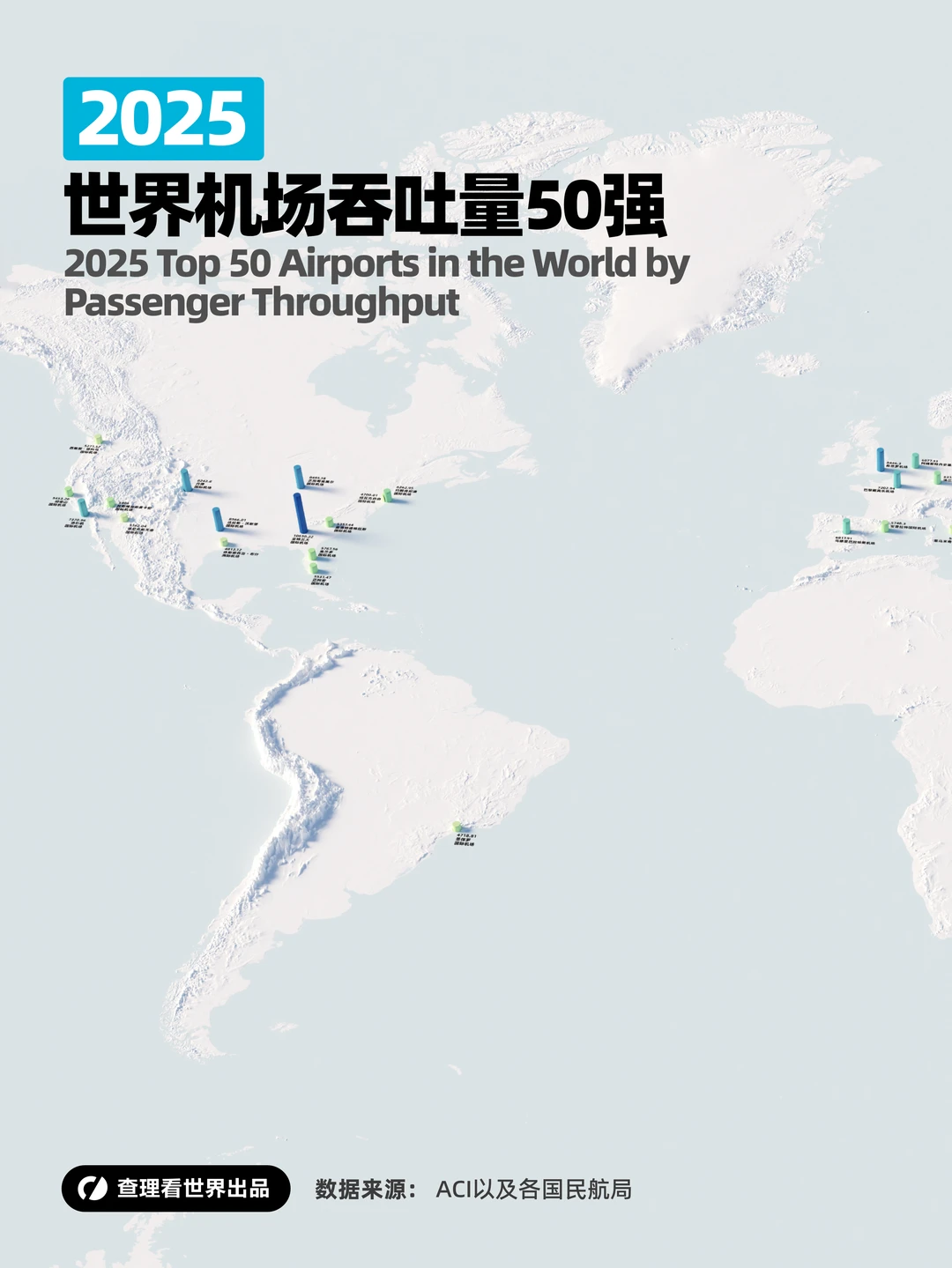 2025年的全球机场排行榜,不再是一次简单的流量点兵,而是一场冷酷的“枢纽主权”保卫战。亚特兰大依然“命硬”。 凭借达美航空无孔不入的航网,它以超过 1.06 亿人次的吞吐量连续夺冠。但明眼人都能看出,这种靠国内支线堆砌出来的繁荣,在面对迪拜(DXB)这种“全球中转中心”的暴力增长时,正显得底气不足。迪拜与伦敦、土耳其构成的“中东-欧洲大走廊”,正在像磁石一样吸走原本属于传统枢纽的国际长航线流量。