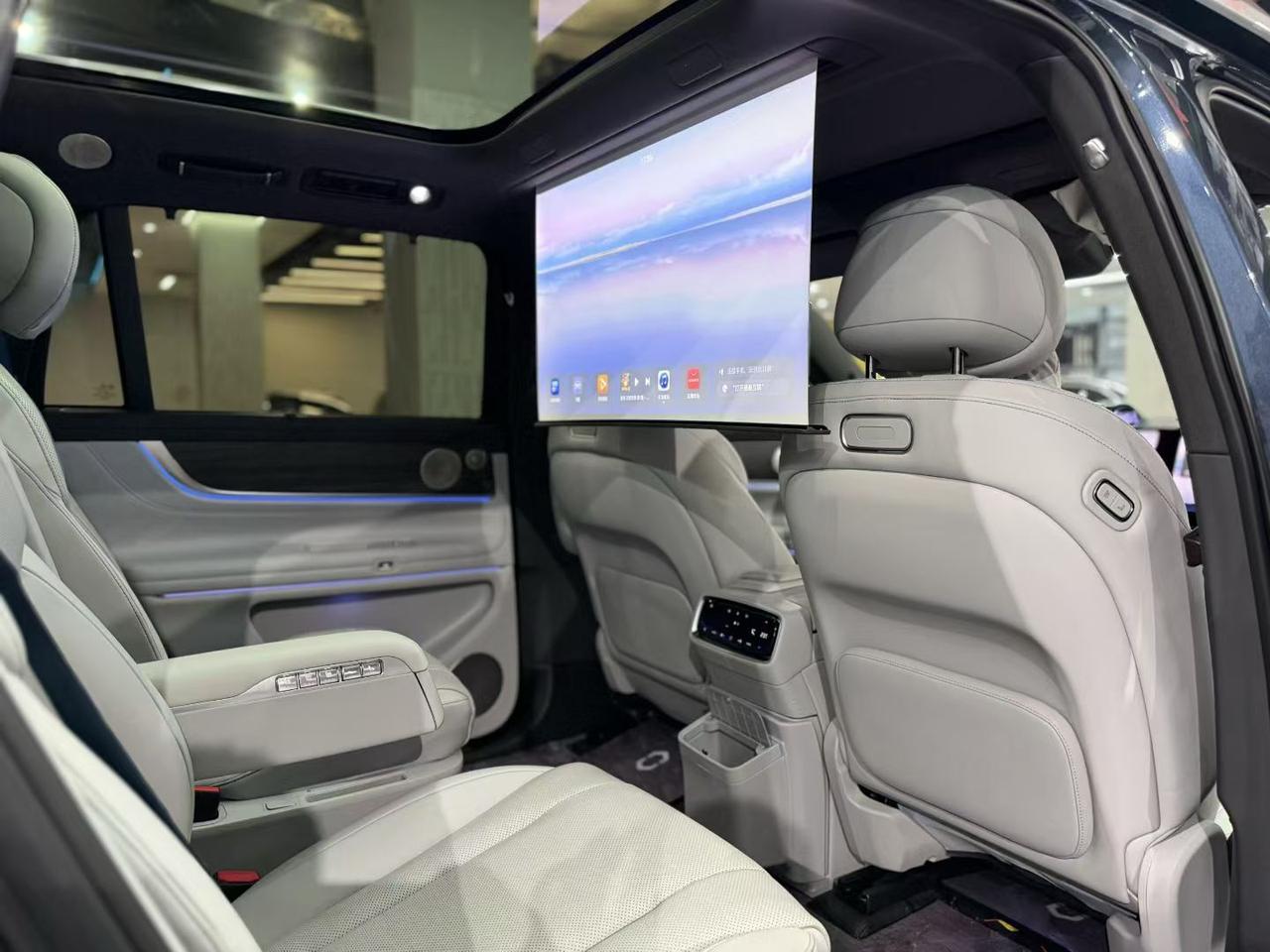 这款问界M9给我的最大感受就是屏幕特别多,前面有三个屏幕,后面还有一个可以上下伸缩的幕布屏幕。不过我觉得坐在第2排,如果是满载的状态下,离投影电视太近了,看着真的稍微有一些吃力。【来自懂车帝车友圈】