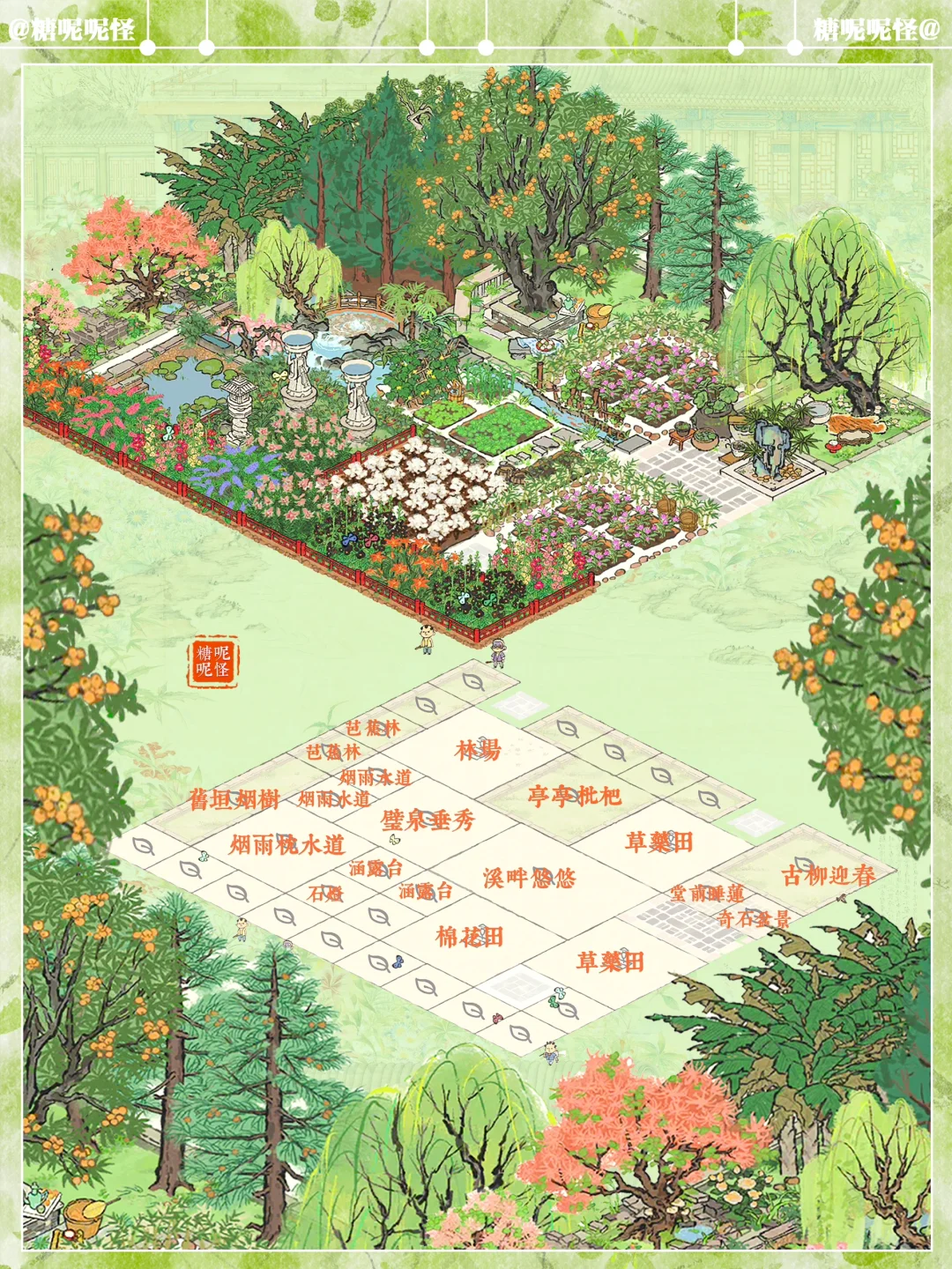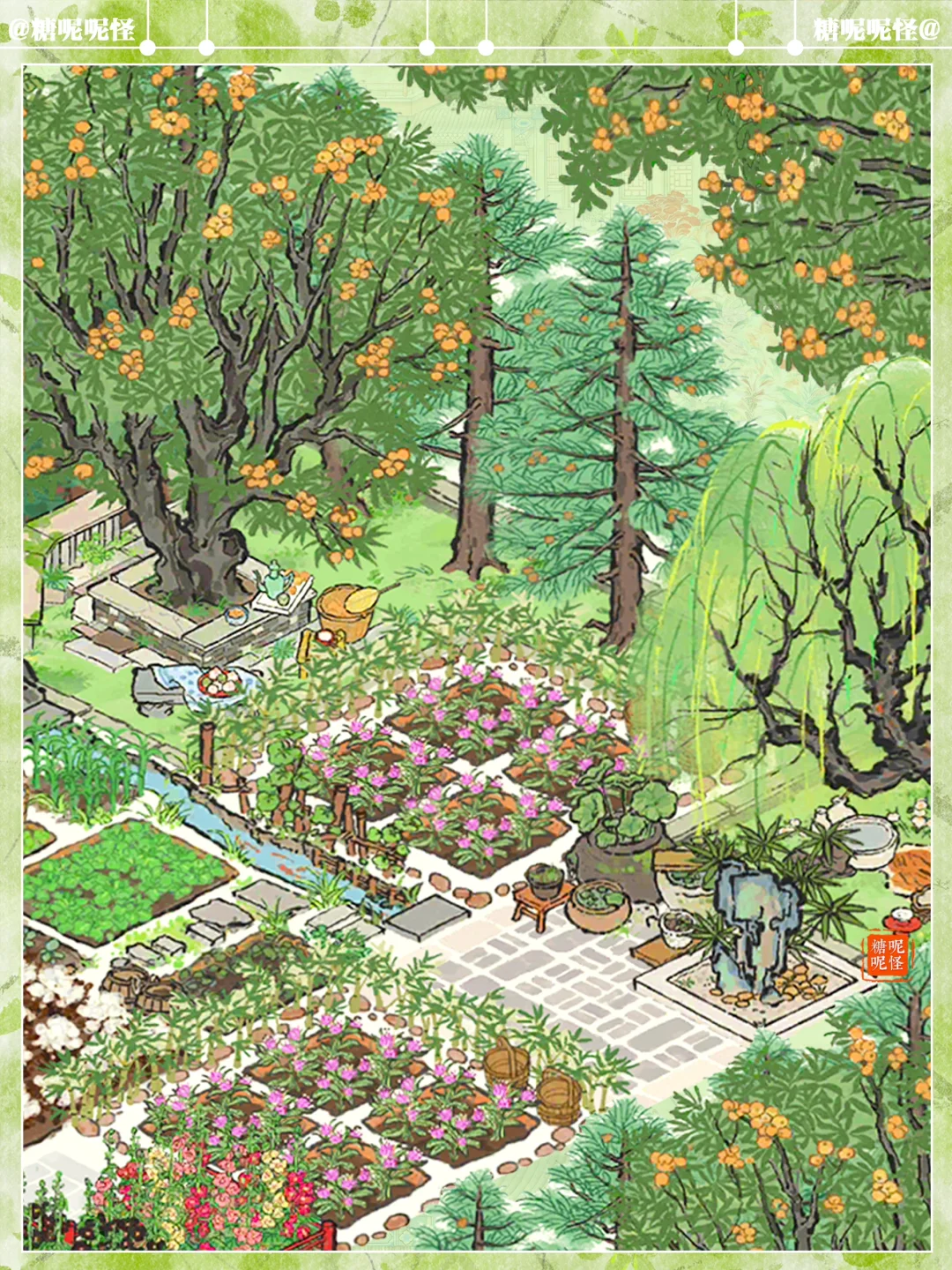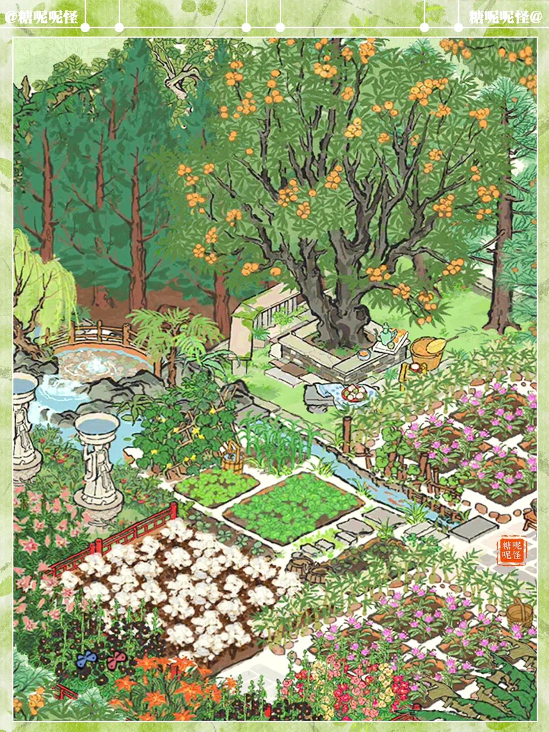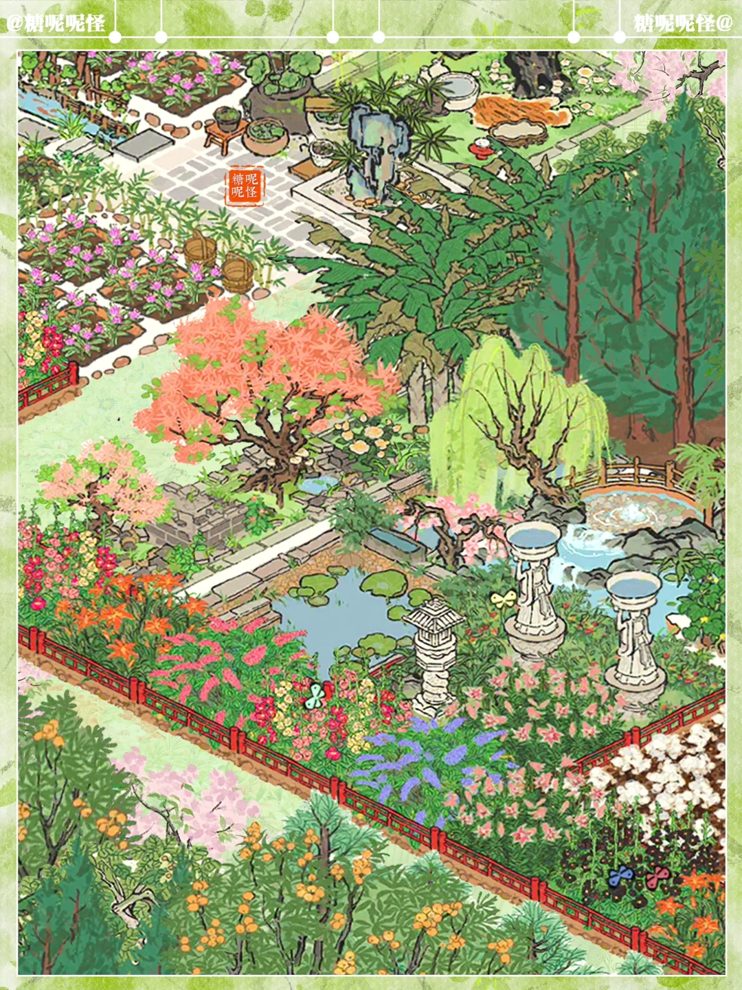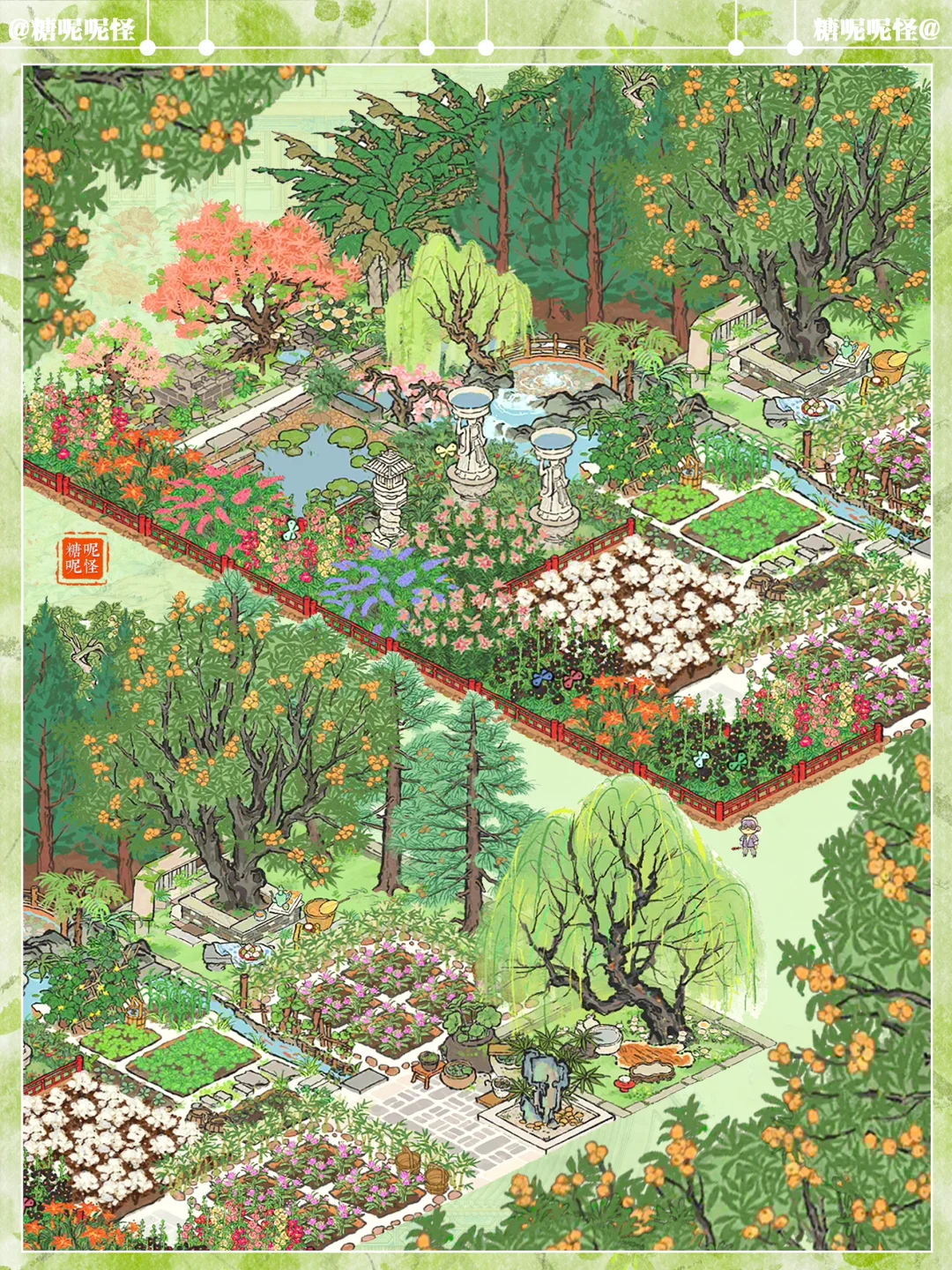 💚碧泉垂秀+溪畔悠悠搭在一起也太好看了,溪水完美衔接 💚【药草园】|【棉花田】各色各样的花圃组合打造江南小花园……
