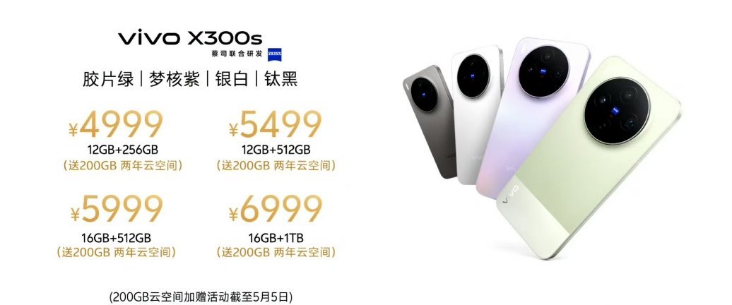vivo X300 Ultra和vivo X300s 发布了分别是6999起和4999起都有送2年200G的云空间,相当于都是456G起步的机器了