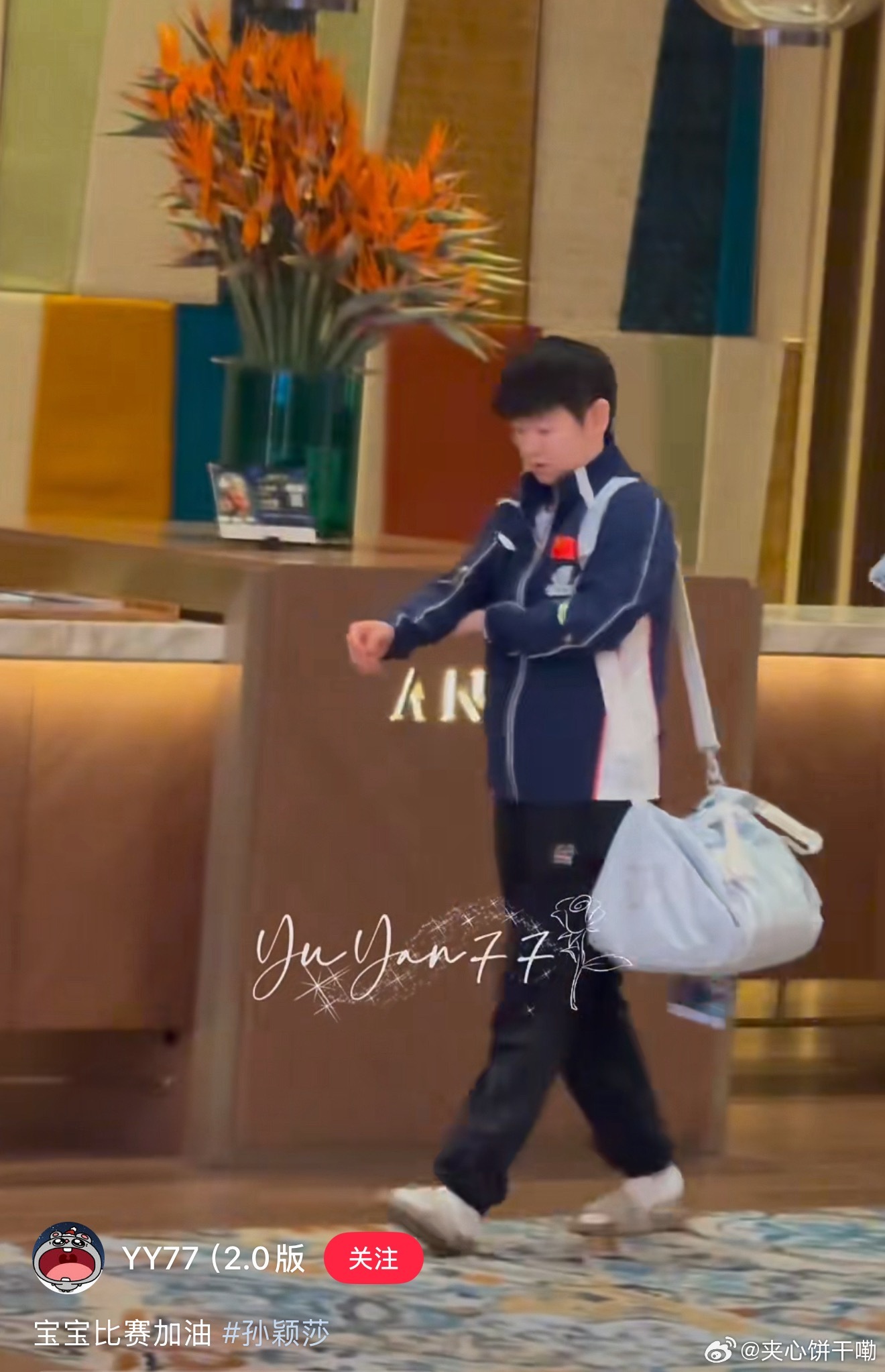 莎莎的小眼神有种“威摄”感!球迷本事也大,竟然跟着莎莎进电梯了。进去就进去呗,