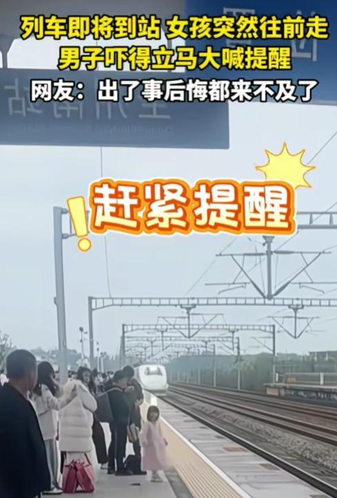 广西,列车即将到站,一女孩突然往前走,男子吓得立马大喊提醒。而一旁的妈妈放下手机回头看一眼男子,才拉回女孩。 女孩小,对站台边缘、列车盲区完全没危险概念,往前一步就是生死线,男子大喊其实是下意识救人,已经是在帮这个家庭避免一场悲剧。 可妈妈全程低头看手机,直到被喊声惊动,才回头看了一眼喊的人,慢悠悠把孩子拉回来。那一眼感觉就是女子不耐烦、嫌弃男子多管闲事,甚至可能心里觉得男子大惊小怪、吵到自己玩手机了。 站台、电梯口、马路边……这些地方本来就该一刻不松眼,偏偏很多家长把手机看得比孩子安全还重。真等出事了,再后悔、再痛哭都晚了。 最可怕的不是孩子不懂事,是监护人失职还不自知,甚至把别人的救命提醒当成冒犯。希望这位妈妈事后能真的警醒,别再拿孩子的安全赌运气。