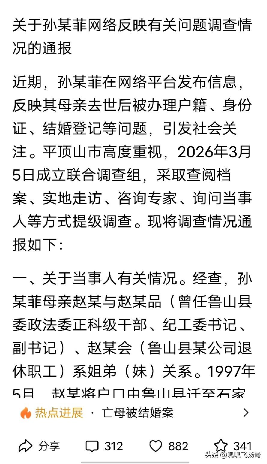 看了鲁山姐弟结婚遗产侵占通报, 感觉这个舅舅今后见到外甥女孙某菲可能要低着头走 ! 这个舅舅不但贪还胆大, 姐姐的养老金余额也才万来块都要拿,这也太贪了吧, 是不是可以大胆推断一下 ,这个舅舅在工作外的其他事儿上应该不可能干净吧 , 当然,这只是正推断, 因为凡事儿都得讲究证据 ;为了让女友冒充姐姐续缴养老金,今后好让女友享受姐姐的养老金待遇 , 居然跟女朋友的结婚证用上姐姐的照片,造成姐弟结婚的荒唐事儿,这脑瓜子确实聪明 ,连养老金都想冒领,真是贪念让人壮大了胆子。 舅舅被处理,一点都不冤 , 只是可惜连累了那几个帮他办事儿的人, 一个降低养老金待遇一个被诫免。唉, 这笔人情债不好还。 其实孙某飞的小姨还不错,这个局面小姨应该很伤心, 最想不通的可能就是她,把外甥女抚养大, 还花 2.5万给外甥女购买意外险和养老金,可外甥女不领情,认为小姨侵占了妈妈的遗产。 其实妈妈的留下来的店铺也好,字画也好 ,珠宝也好, 孙某菲真不该跟小姨去算的那么清, 妈妈生病花费小姨给的 ,妈妈房子的贷款小姨还的 , 至于除了这些费用, 妈妈的遗产还有没有剩余, 这账不能这样算, 把你照顾抚养大,就是有了恩情,养育之恩, 这笔账能算清吗 ?