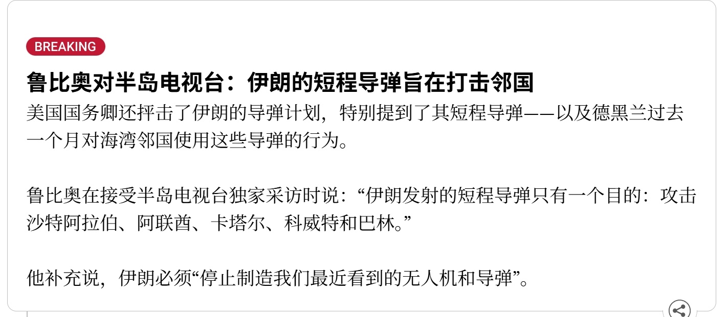 卢比奥:伊朗必须停止生产我们最近看到的无人机和导弹(来源:半岛电视台)