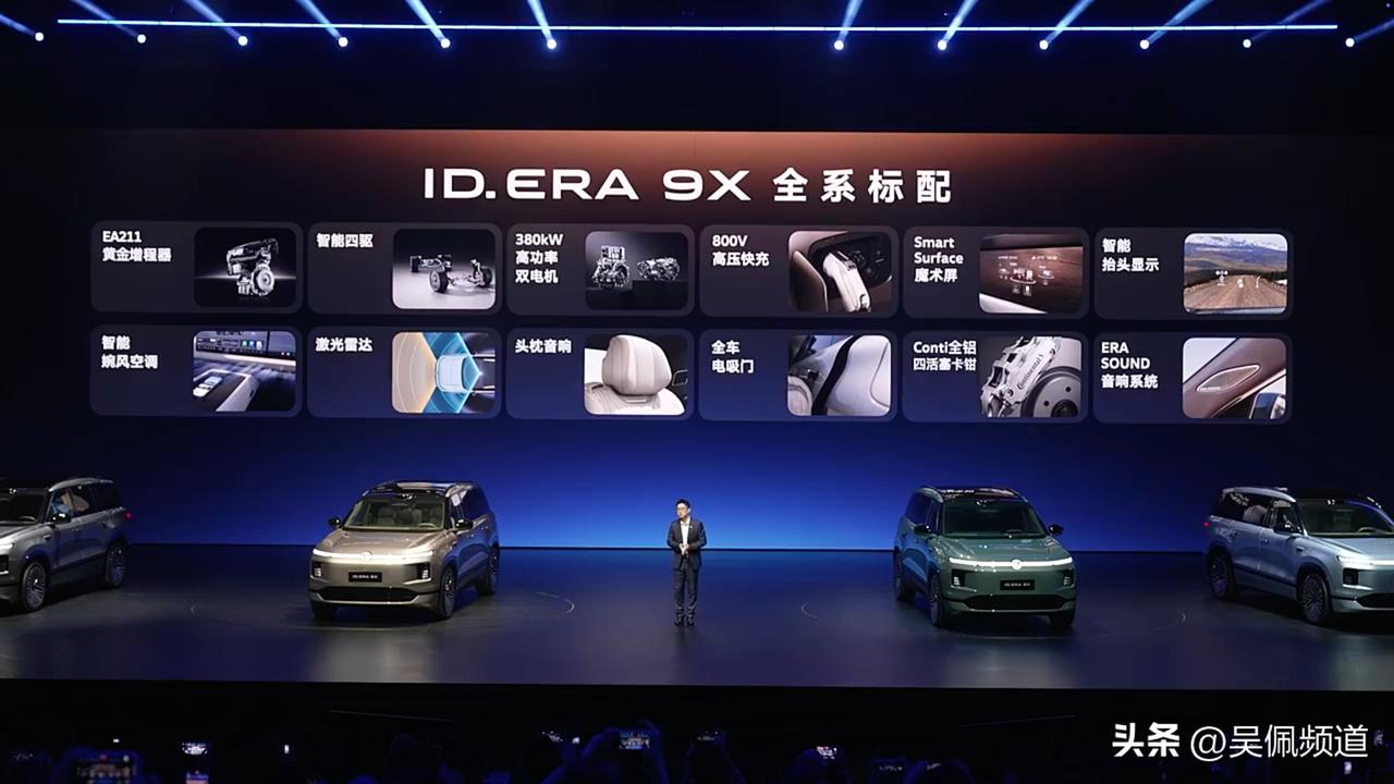 上汽大众ID. ERA 9X预售32.98万起,又一台大六座增程SUV来了,市场竞争很激烈,实力够不够?快速跟大家过一次它的核心优势: 1、增程器是我们再熟悉不过的大众EA211发动机,全球装机量超过2500万台。 2、首发搭载Momenta R7强化学习世界模型,官方说法是“旨在智能辅助驾驶第一梯队选手”,今年开始你或许不能再说合资新能源车智驾不行了。 3、比途昂还要大的大型SUV。车长5207mm,轴距3070mm,三排六座都宽敞,玩空间大众应该是不怵新势力的。 4、九屏交互,创新了Smart Surface魔术屏以及还有21.4英寸3K超清后排吸顶屏等等,所以谁再说只有新势力有大彩电的,大众第一个跟他急了。[狗头][狗头][狗头] 5、大众ID. ERA 9X是一款大电池增程车,65.2kWh宁德时代骁遥电池,CLTC纯电续航超400km,800V高压快充,综合续航去到1651km。 6、“大车不难开”,前双叉臂+后五连杆悬架、双腔空气悬架等硬件加持,通过VMC底盘智控中枢调控,让它拥有灵巧的驾驶感受。而且得益于后轮转向系统的加入,它只有4.85m转弯半径,甚至小于两厢Polo。 它标配其实很丰富的,可以期待一下4月25日北京车展时上汽大众ID. ERA 9X的上市发布。