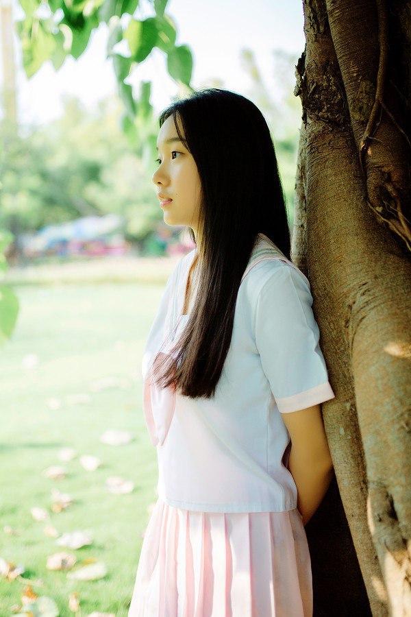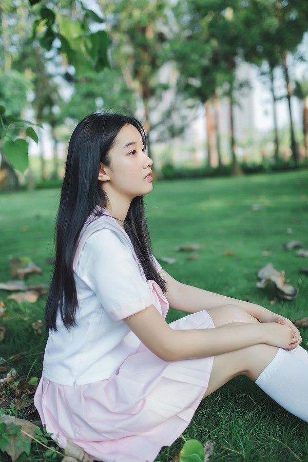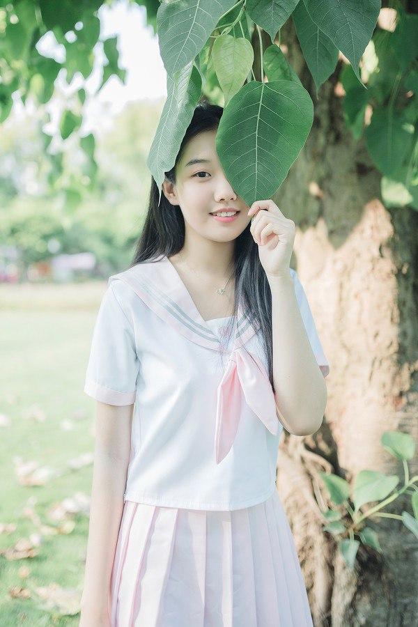 少女倚树沉思,绿意盎然,静谧时光。jk女孩的日常 沉思氛围感写真 甜系jk女孩