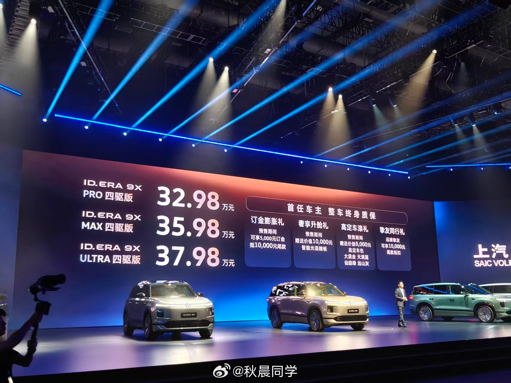 上汽大众ID. ERA 9X预售32.98-37.98万元,这车直接冲着市场主流来的。