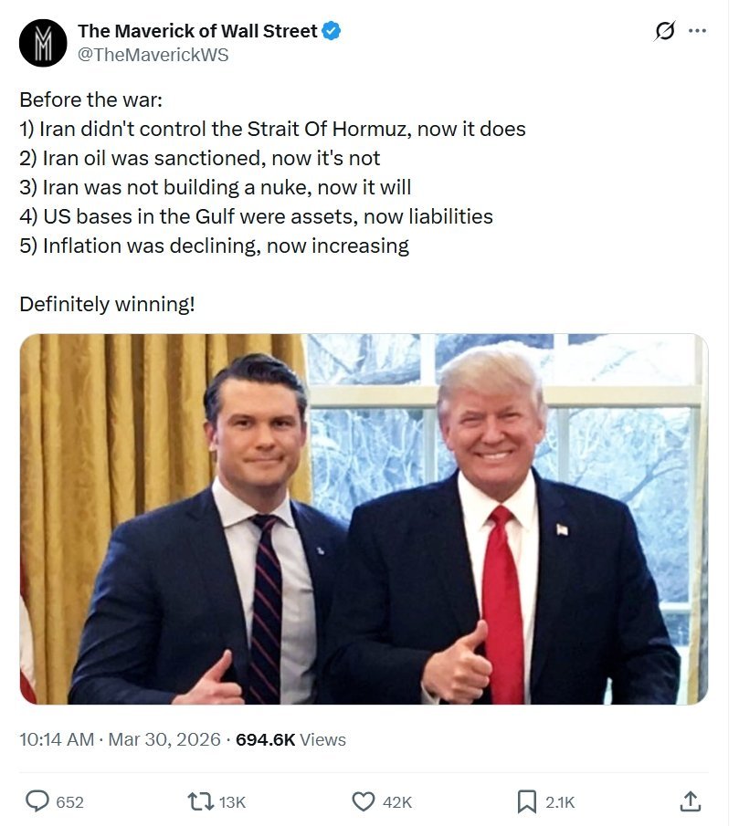 5) 开战之前美国通货膨胀率是下降的,现在上升了;