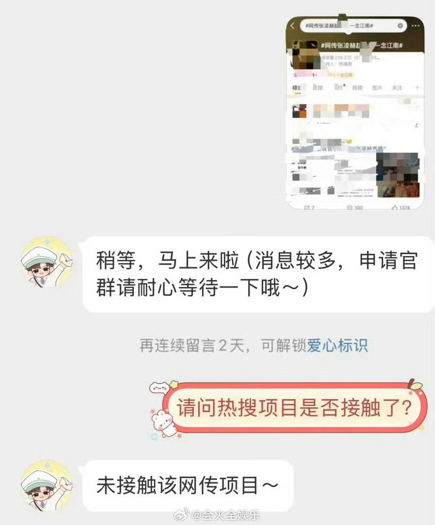 张凌赫方否认接触一念江南张凌赫对接否认接触一念江南