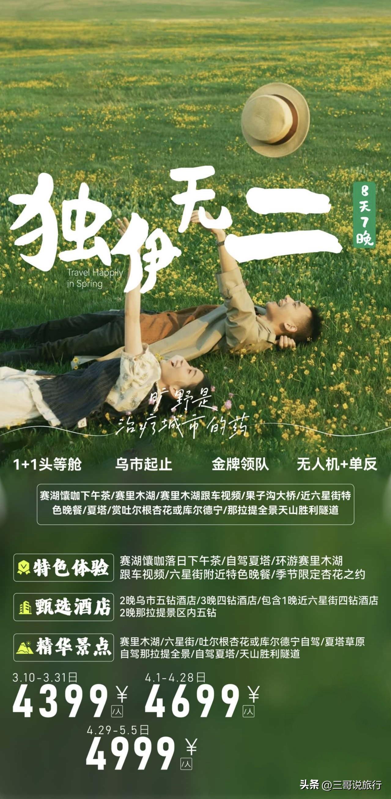🌸伊犁春日小拼车|奔赴杏花与草原的浪漫之约🌸 春季新品重磅上线,赴一场北疆限定的春日盛宴! 春日伊犁,把北疆的温柔藏进每一寸风光里✨ 专属2-6人精品小拼车,纯玩无购物,告别拥挤赶路,全程随走随停,把时间都留给漫山美景。 深入万亩杏花谷,看粉白杏花漫山遍野绽放,宛如人间仙境;打卡那拉提空中草原,邂逅顶冰花破冰而出,生机盎然,连住两晚深度游玩,错峰出行独享壮阔风光。 住宿精心安排,伊宁市入住近六星街优质酒店,15分钟直达,闲暇漫步六星街,聆听悠扬巴扬琴声,感受异域小城烟火。 本地资深老司机带队,路线熟、路况稳,轻松玩转伊犁春色,与志同道合的旅伴同行,共赴这场花海与草原的浪漫之约,定格春日最美瞬间~