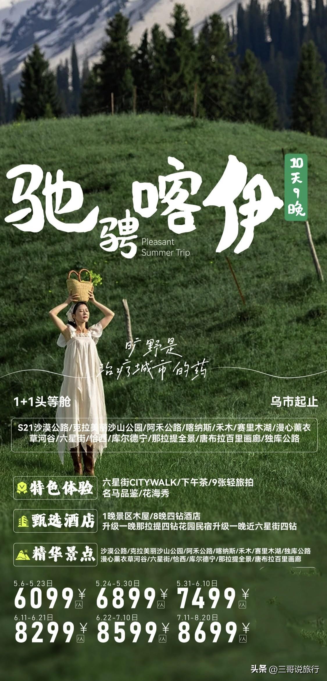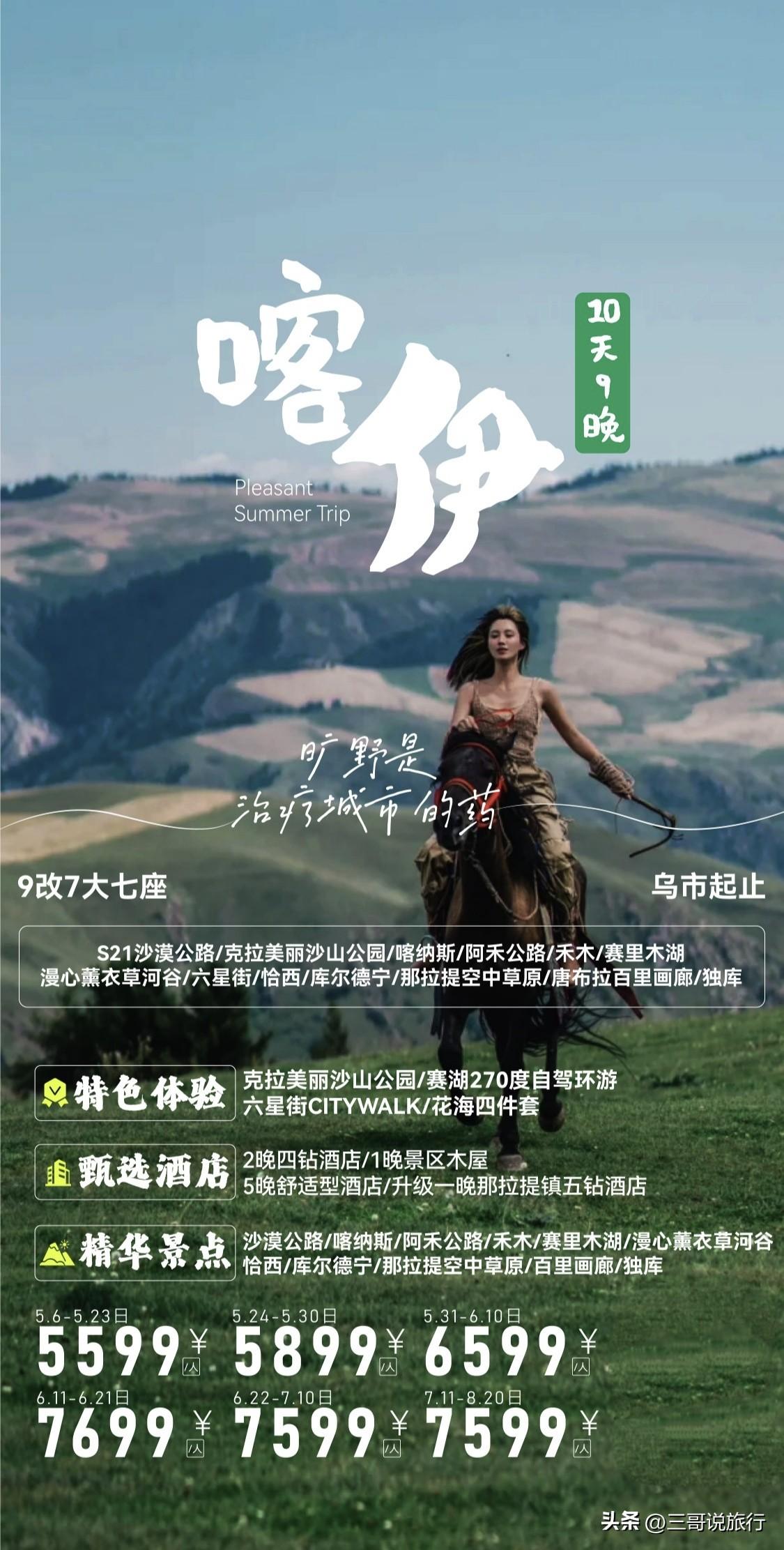 夏嗨拼游|喀伊连线2-6人小团,解锁新疆限定浪漫✨ 全国夏季喀伊连线宝藏行程来啦!2-6人精品小团,嗨玩新疆不拥挤,沉浸式拥抱塞外盛夏🌿 在网红六星街打卡热巴同款公主烤羊餐,大口啃羊肉,伴着歌舞感受浓郁民族风情,舌尖与心灵双重满足🐏 奔赴赛里木湖这片蔚蓝秘境,定制专属旅行电影,把湖光山色永远定格在镜头里🎬 全程自驾一车到底,那拉提、赛湖、恰西、库尔德宁全景畅玩,不用频繁换车,轻松打卡每一处绝美风光🚗 更有花海四件套:浪漫下午茶、9张精致轻旅拍、名马品鉴、梦幻花海秀,升级禾木轻旅拍,定格夏日限定美好🌸 伊宁住宿贴心选在六星街附近,15分钟内直达,游玩无忧,放肆嗨玩不用愁! 这个夏天,相约新疆喀伊,赴一场自由又浪漫的旅行,2-6人结伴刚刚好,速来拼游出发~