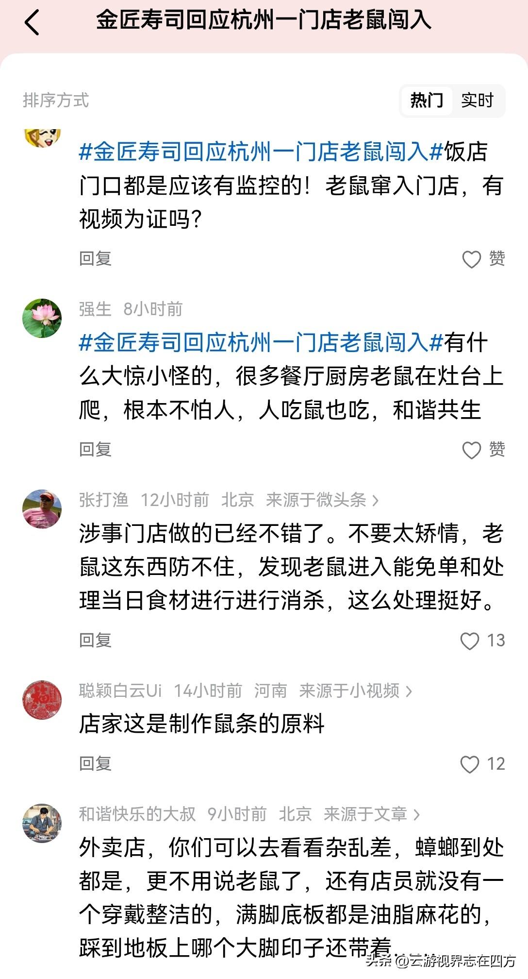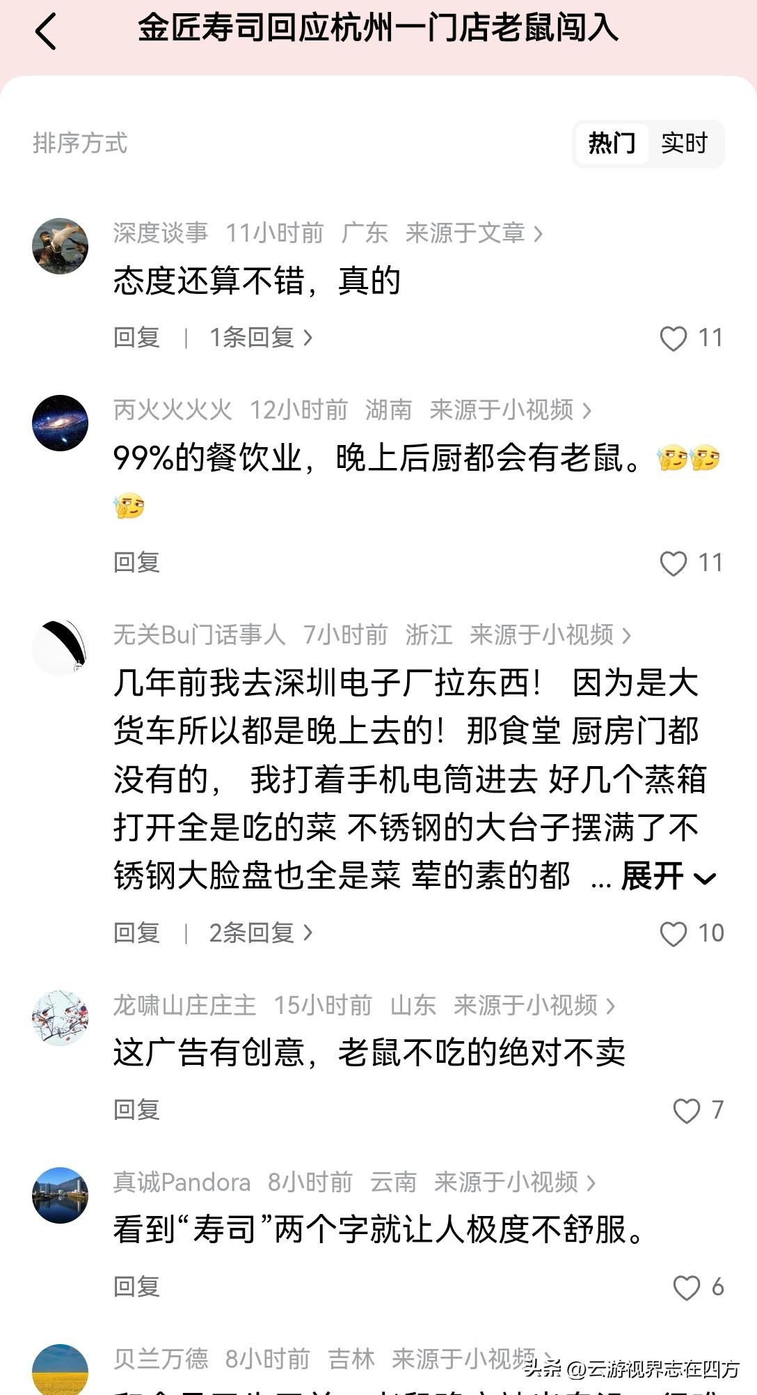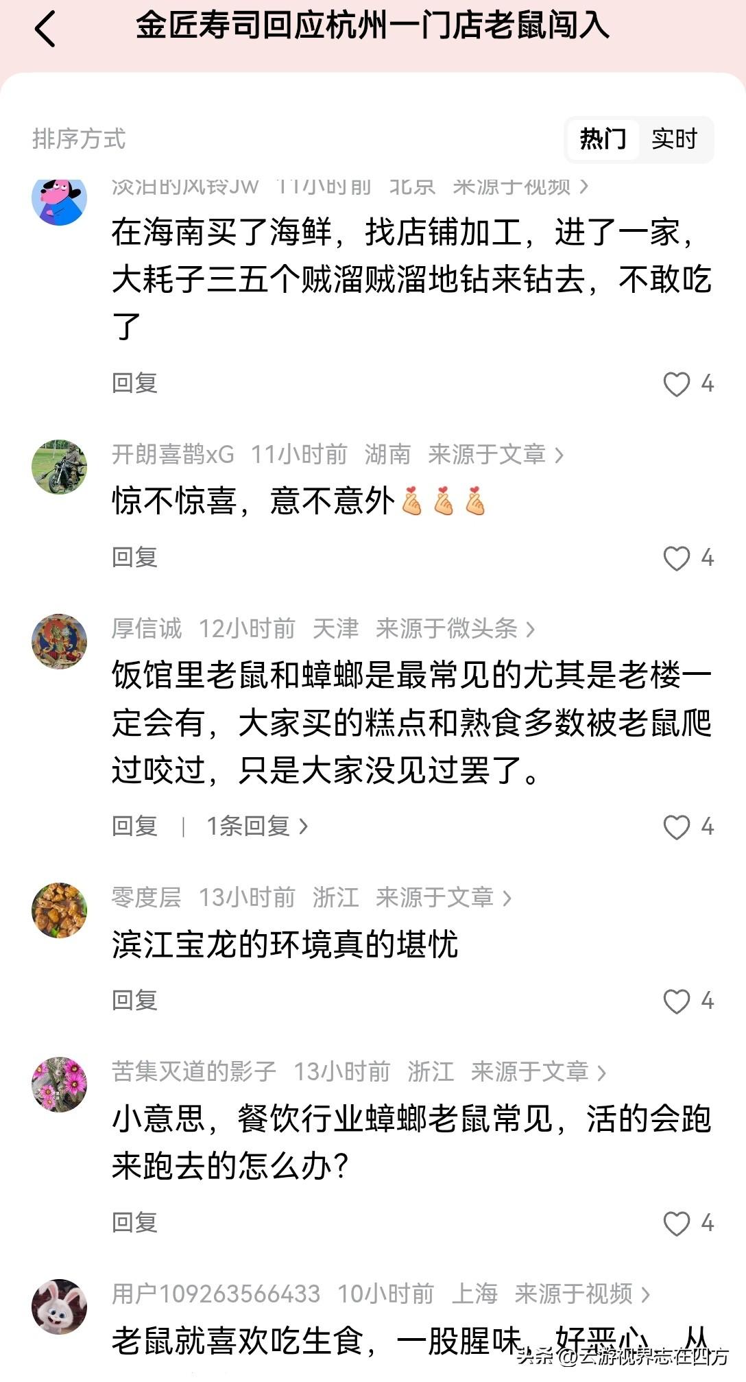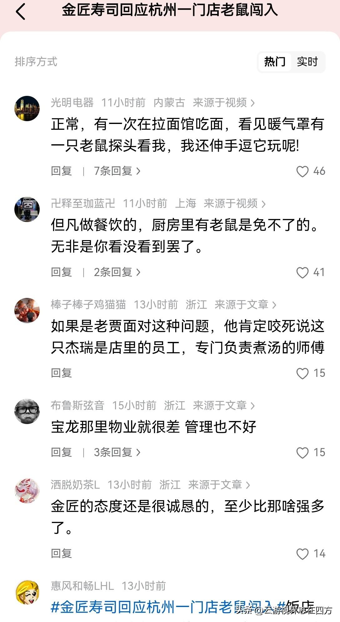 金匠寿司鼠患引热议:为何舆论从“口诛笔伐”变成“集体理解”? 杭州金匠寿司回转台惊现老鼠奔跑,本应是引发全民愤怒的食品安全事故,评论区却呈现出反常的“平静”。网友没有激烈指责、没有集体抵制,反而多了几分“理解”与“无奈”,甚至直言“外面吃饭本就眼不见为净”。这种巨大反差,并非消费者宽容,而是长期餐饮乱象下,公众心态的真实折射。 一、“见怪不怪”的麻木:食品安全问题常态化,公众已脱敏 近年来,餐饮行业食安问题频发,从后厨脏乱、食材过期,到虫害入侵、卫生不达标,早已不是新鲜事。回转寿司、网红连锁品牌更是食安问题高发区,消费者在一次次曝光中逐渐麻木,从最初的愤怒震惊,变成“早就知道外面不干净”的默认心态。 金匠寿司鼠患事件,只是众多乱象中的一例,公众早已失去“第一次曝光”的激烈反应,转而形成“外面吃饭都差不多”的普遍认知,自然难以掀起大规模口诛笔伐。 二、“无力改变”的妥协:维权成本高,选择“眼不见为净” 消费者并非不重视食品安全,而是面对行业乱象深感无力。个体维权耗时耗力,即便投诉举报,也难从根本上改变行业现状;加之餐饮门店流动性大、监管难以全覆盖,普通消费者只能被动接受“眼不见为净”的生存法则。 这种妥协并非认同,而是无奈之下的自我安慰——既然无法杜绝,只能选择忽视,因此面对金匠寿司事件,更多人选择调侃、吐槽,而非激烈对抗。 三、“行业共识”的默许:餐饮卫生潜规则,公众心知肚明 餐饮行业后厨卫生、虫害防控、食材管理等问题,早已成为公开的“潜规则”。多数消费者清楚,连锁品牌虽有标准化流程,但实际执行中常打折扣,尤其是快速扩张的品牌,门店品控更难落实。 大家默认“外面餐饮不可能绝对干净”,因此对金匠寿司的鼠患事件,虽感恶心,却未超出心理预期,自然不会产生“颠覆认知”的强烈愤怒,反而形成“彼此心知肚明”的默契。 四、品牌公关的“缓冲”:及时闭店免单,弱化舆论对立 涉事门店第一时间免单、闭店消杀、废弃食材,品牌快速发布致歉声明,这种“快速响应”在一定程度上缓冲了公众情绪。消费者看到品牌未推诿、未敷衍,虽不满卫生问题,却也少了几分“死磕到底”的执念,评论区氛围更趋平和。 结语 评论区的“理解”,从来不是对食品安全问题的纵容,而是消费者在长期行业乱象中,形成的无奈、麻木与妥协。这种“集体沉默”更值得警惕——当公众对食安问题习以为常,恰恰说明行业监管与品牌自律仍有巨大漏洞。唯有真正筑牢食品安全防线,才能让消费者不再“眼不见为净”,重拾对餐饮行业的信任。 后厨惊现老鼠 杭州9块9寿司 杭州金匠寿司 寿司店探店