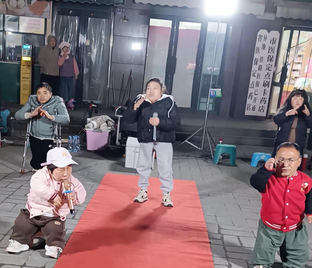 在夜市,我蹲下来和这群个子小小的朋友一样高,看着他们努力又坚强的样子,忽然觉得退休的我真的还很年轻。他们唱了一整晚、蹦了一整晚,好不容易才挣了几十块钱,却被小朋友顺手拿走,最后只剩下两块钱。站在后边那位个子高一点的姑娘含着泪花难过地说:辛苦了一晚上就挣这点钱,还被拿走了,今晚的饭又没着落了。听了这话,我心里特别疼。我买了绢花和麻花鼓励他们,夸他们真棒,身上只有 20块钱了,也一并递给了他们。他们几个不约而同地一起说谢谢,那一刻我的眼泪忍不住掉了下来,观众和路人也纷纷献上爱心。 想对所有孩子、同学们说:当我们见到残疾人、遇到他们有困难时,能伸把手就伸把手,哪怕一块、五块都是心意。千万不要再拿走他们辛苦挣来的钱了。好孩子,让我们多一份可怜、多一份同情,多一份善意吧。