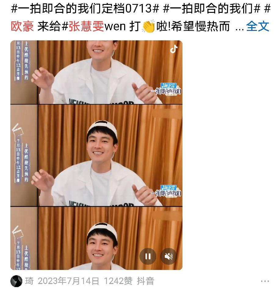朋友间,能做到"苟富贵,不相忘"最难得! 张慧雯上浪姐,欧豪的应援让我好感动,好感动! 张慧雯上一次上综艺是优酷的《一拍即合的我们》,当时欧豪也专门录了个视频帮她宣传! 两人首次合作是2015年的电影《在世界中心呼唤爱》,两人都是首次当主演;7年后又合作了谍战剧《前夜》,在北京卫视和腾讯平台播出,当时的卫视收视率第一,2025年山东卫视和广西卫视都重播过。 这几年张慧雯一直比较低谷,最后播出的担任主角的电视剧就是《前夜》,而欧豪正如日中天,工作量巨多,却仍在这么忙时专门为张慧雯发了应援。在娱乐圈有这样真挚的朋友,太珍贵了! 欧豪的真诚、义气、敢担当,真是应了海清说的"欧豪,你是我的神"!