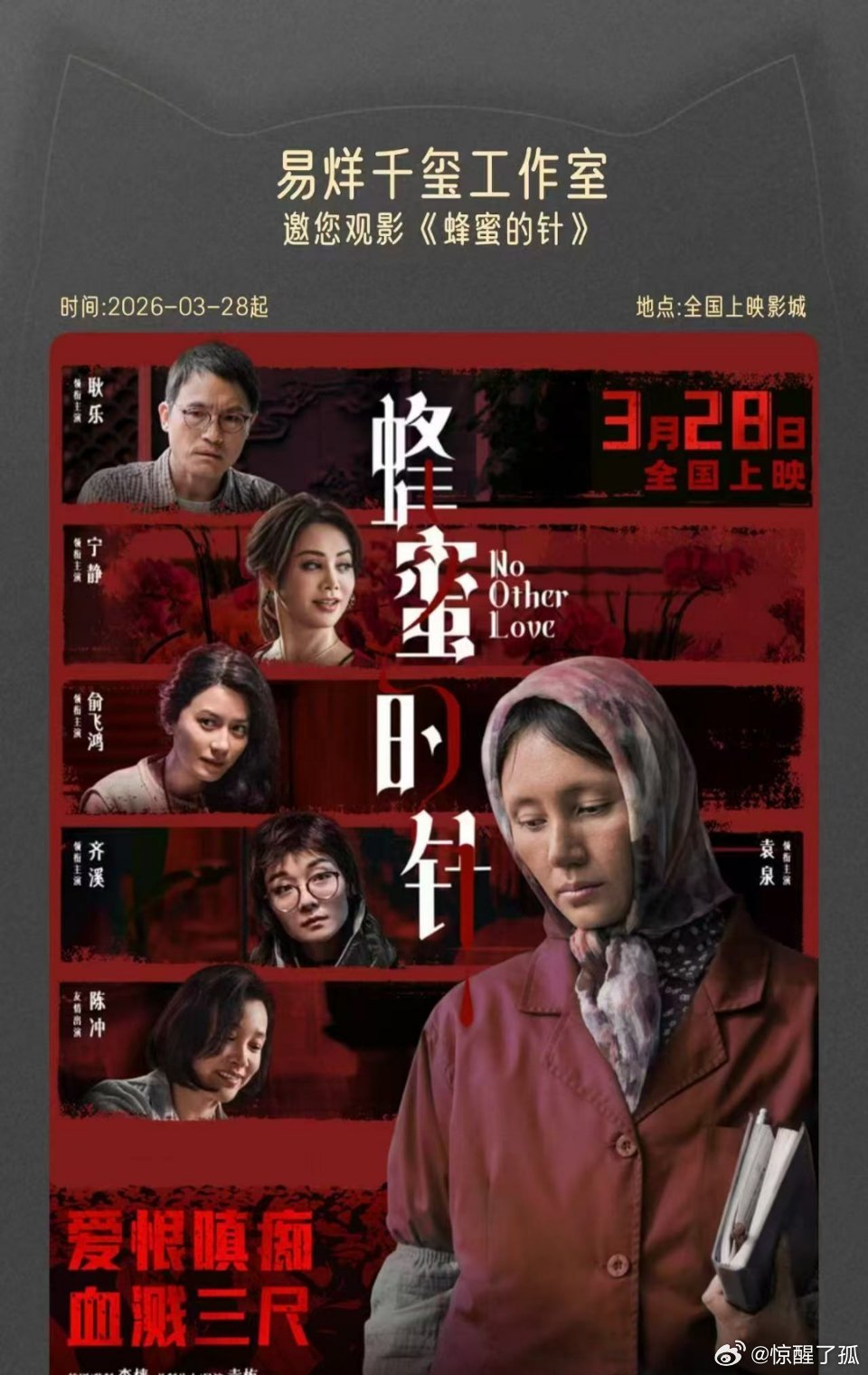 被易烊千玺的支持狠狠戳中!包场助阵《蜂蜜的针》,看实力派演绎偏执爱恋与人性幽暗,感受甜蜜下的锋芒。