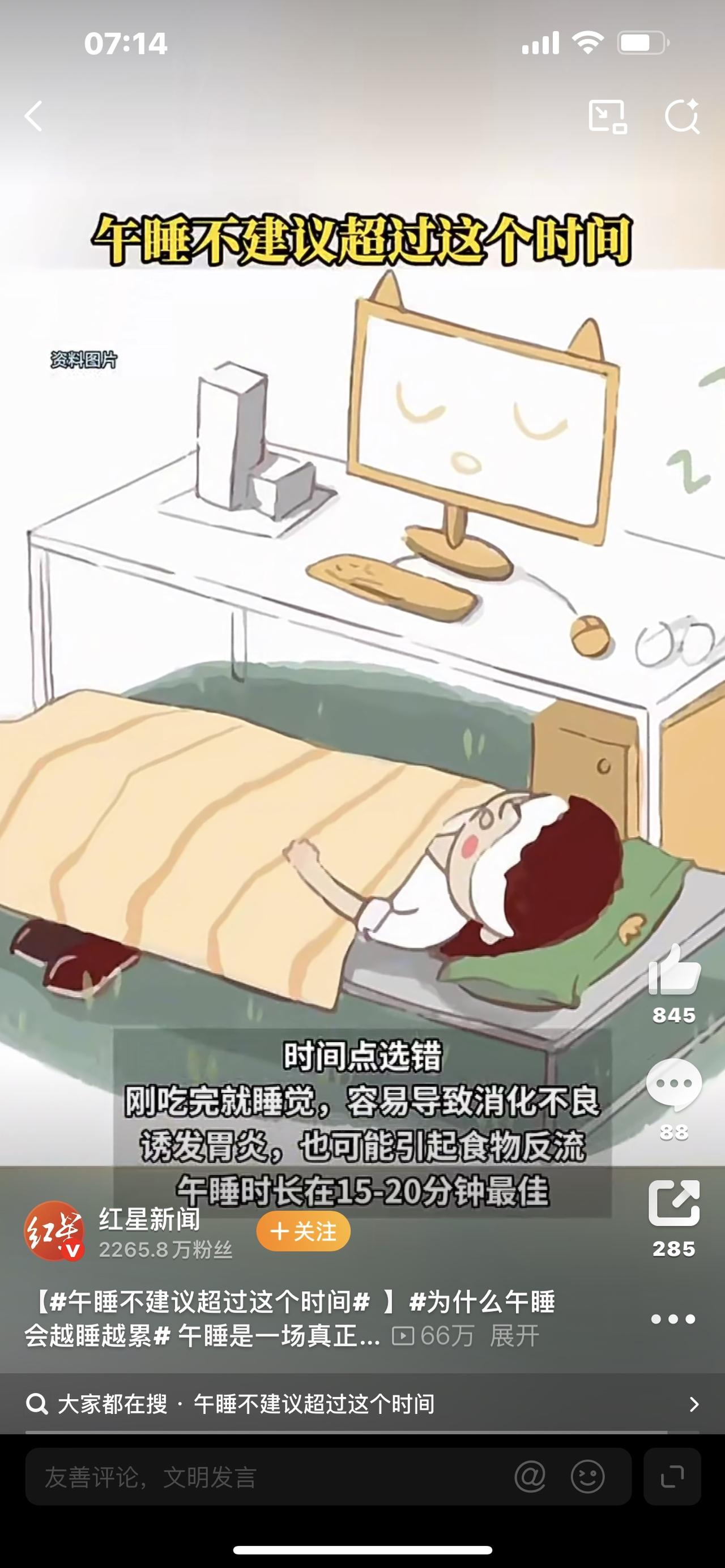 午睡,是一场真正的豪赌 (爆款口播文案|开头钩子+中间转折+结尾共鸣) 你敢信吗?每天中午闭眼的那十几分钟,居然是成年人最疯狂的一场豪赌。 赌注很小,不过半小时空闲;代价极大,赌上你一下午的状态、心情,甚至是职场体面。 赌赢了,神清气爽,思路开挂,效率直接拉满,仿佛给灵魂充了满电。 赌输了,头昏脑涨、四肢发软、脑子像裹了浆糊,比熬了通宵还累。更可怕的是,一睁眼窗外天黑,全世界都在往前跑,只有你被遗落在孤独里,那种失落感,能瞬间击垮一个成年人。 很多人以为,午睡不就是躺一会儿吗? 其实这根本不是休息,是浅眠与深睡的生死博弈。 你控制不了入睡速度,控制不了睡眠深度,更控制不了闹钟能不能把你准时叫醒。 趴睡压麻手臂,侧睡压出皱纹,睡短了没用,睡长了直接陷入睡眠惯性,越睡越废。 有人在工位睡到五点半,醒来全公司都走光,社死到想原地辞职。 有人睡完晚上彻底失眠,昼夜颠倒,陷入白天睡不醒、晚上睡不着的死循环。 我们为什么明明怕赌输,却还要一次次下注? 因为我们太累了。 是熬夜后的疲惫,是工作后的紧绷,是生活压得喘不过气时,唯一能抓住的、短暂的逃离。 我们赌的不是睡眠,是片刻的放松,是不用强撑的温柔,是成年人仅存的一点自由。 其实我们想要的,从来不是一场豪赌。 只是想安安稳稳睡20分钟,醒来不昏沉、不焦虑、不狼狈。 愿每一个努力生活的人,都能赌赢这场午睡, 愿你不必在疲惫里硬撑,愿你每一次闭眼,都能被温柔唤醒。