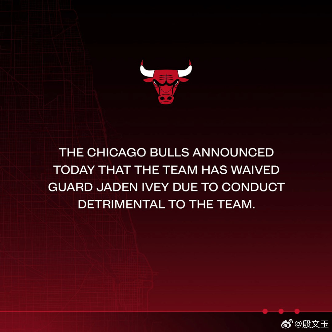 “芝加哥公牛队今日宣布,球队已裁掉后卫艾维,原因是其行为对球队造成负面影响。”