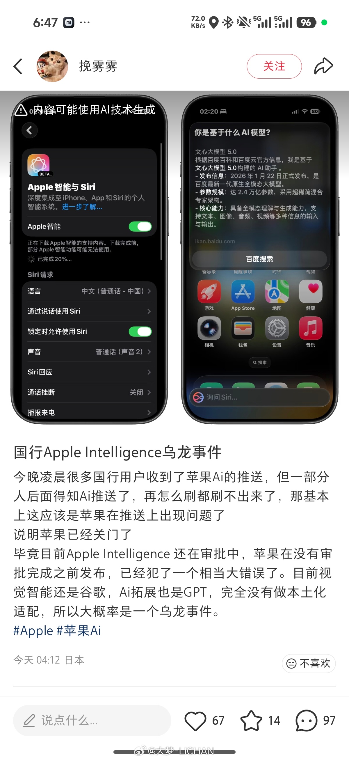 早上起来看到苹果更新AI,然后火速更新26.4,结果这就没了?这么搞苹果的AI在