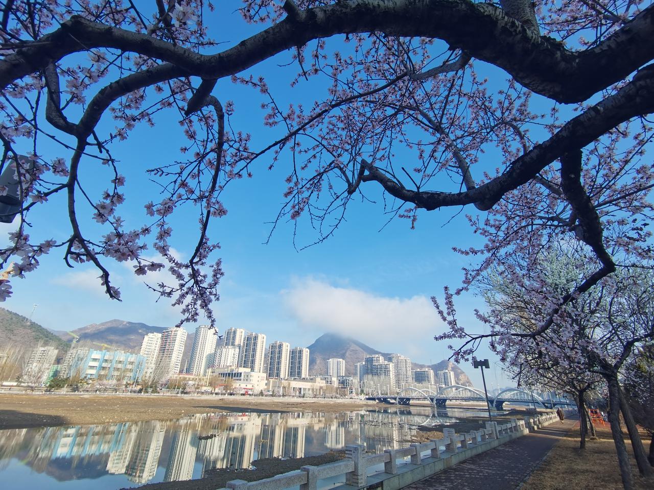 承德武烈河春花图,未经过任何修饰的手机原片。 承德不仅有避暑山庄,还是一座山水园林城市,空气质量也位居北方前列。春天来了,武烈河两岸风景美如画。稍有遗憾的是武烈河部分河道维修, 否则有水会更美丽。