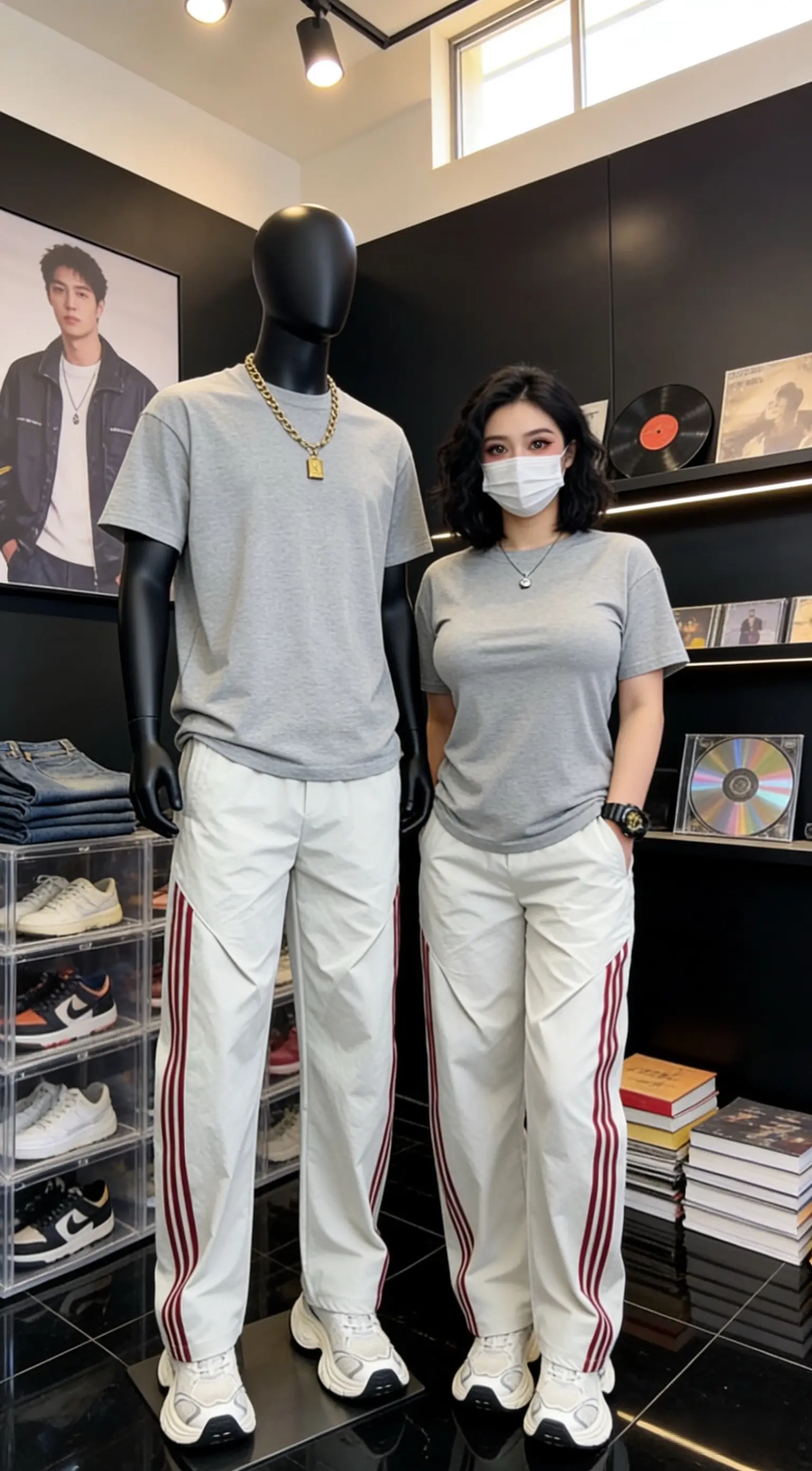 2026夏季新款运动条纹拼接休闲裤男士宽松阔腿裤黑色直筒长裤潮牌 ✓
