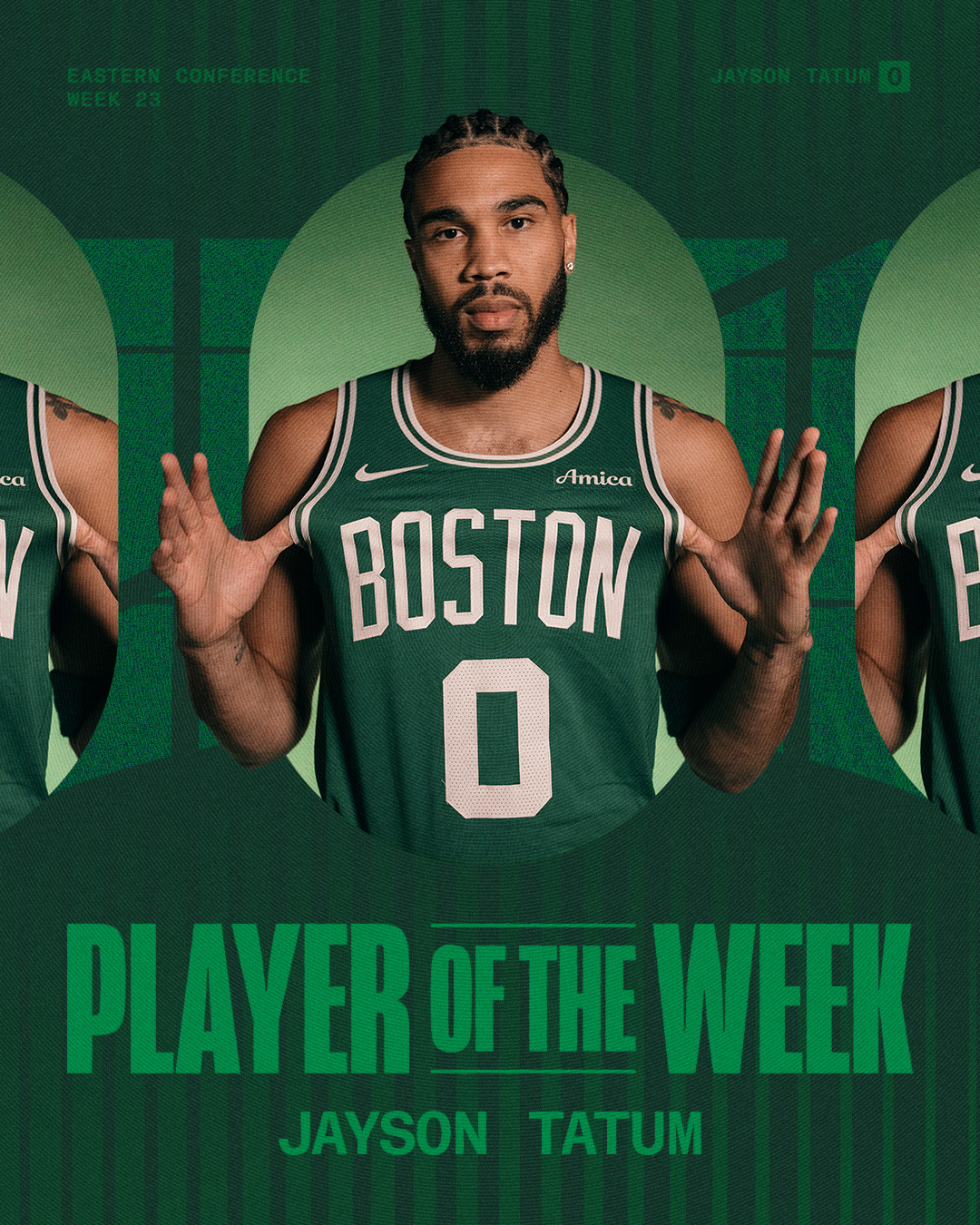 恭喜塔图姆斩获东部周最佳场均贡献25.7分9.7篮板6.7助攻,帮助凯尔特人取得