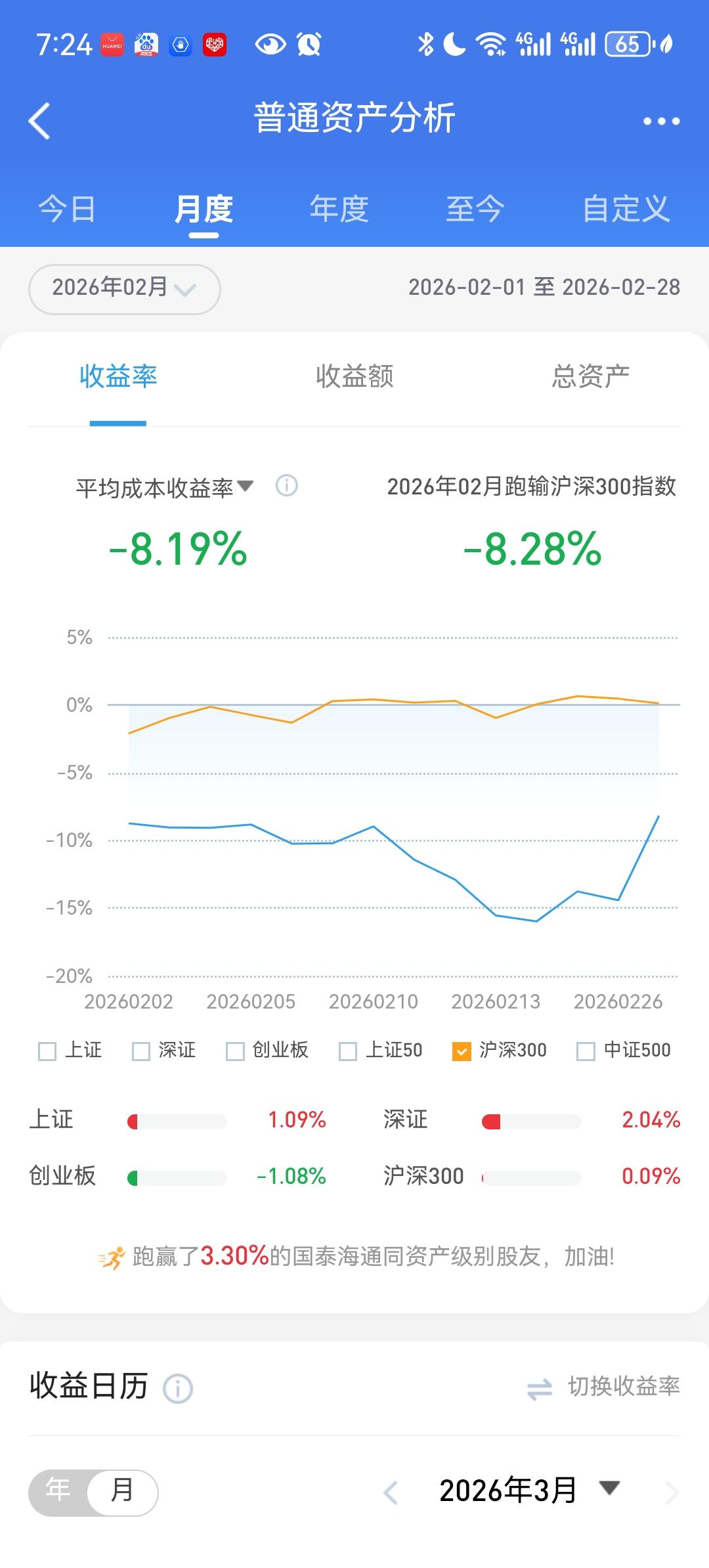 我终于明白炒股的真正王道,就是拿好一个股票,远比像开超市一样拿十几二十个股票强!看看我3月份,跑赢了93%的人,远远跑赢大盘。而我2月份,只跑赢了3%的人,远远跑输大盘。知道为什么有这么大差别吗?因为我3月份整个月只买了6个股票,其中后半个月绝大部分时间是单吊1个股票,那个股票非常稳健跑赢了大盘很多。而我2月份整个月买了多达25个股票,最后是这里亏那里也亏,亏了个大发。