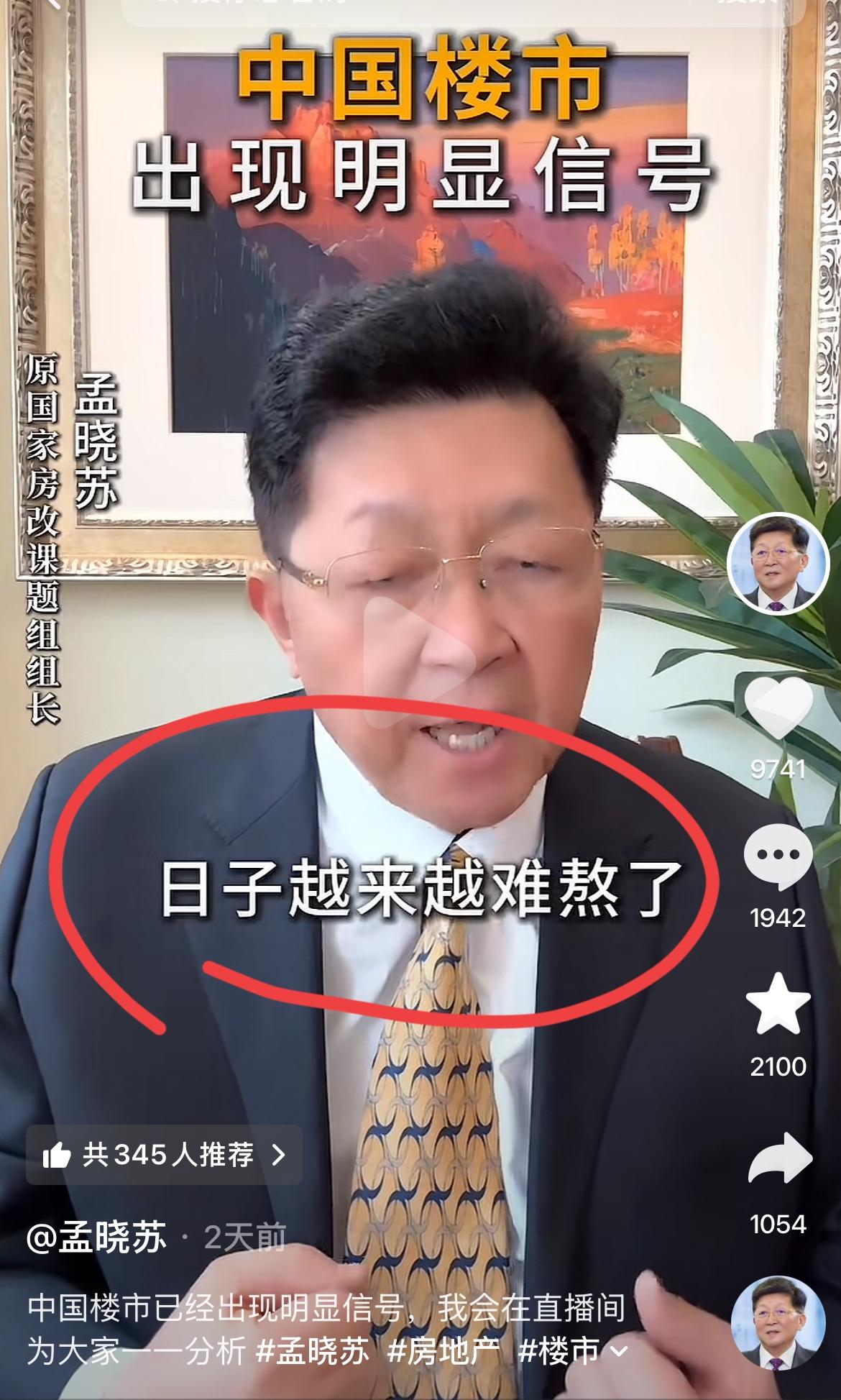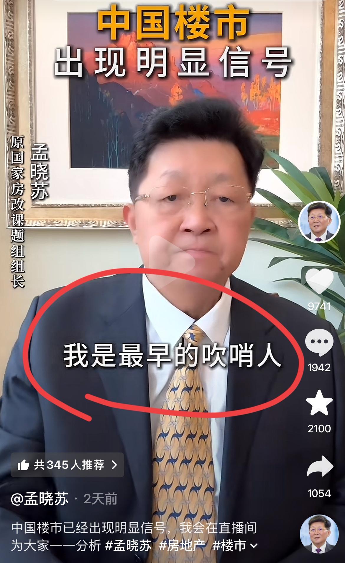 著名房地产专家孟晓苏:中国楼市复苏迹象明显!! 孟总作为著名经济学家,北大高材生; 对中国房地产市场研究了几十年。 据孟总透露,他曾经是高层参谋; 中房集团董事长,房改组组长; 很多房地产的政策都是他和他的团队参与制定的。 对推动中国房地产的迅猛发展,孟总起到了巨大的作用。 这次,孟总再次出来强调,房价不能再跌了。 已经跌去了40%,180万亿,比一年的GDP还多。 在这么跌下去,日子都不好过。 孟总说,他可是最早的那个吹哨人。 现在高层已经定调了,一定要稳住。 孟总断言,2026年不但能稳住,大概率涨起来。 是吗,要涨了吗,你准备好进场接盘了么??