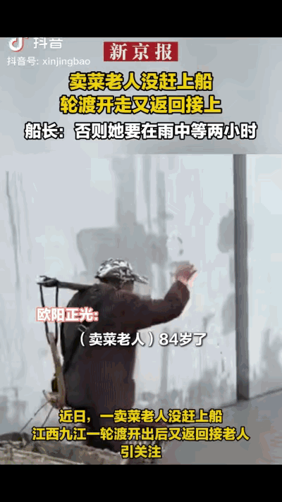 太暖心!近日,江西九江,一位84岁卖菜老人准备坐船返程,没曾想刚到渡口却发现船已开动离岸几十米远了就赶紧招手,还好船长看见了,又掉头开了回来!而船长的话令人破防: “如果不接她,她就要再等两个小时!” 这位船长叫欧阳正光,据他说,3月28日那天,船已经开动了离岸数十米,就看见老人边招手边朝渡口赶,就又将船折返了回去接上了老人。 很多人看完这段视频,心里都泛起一阵暖意,看似只是一次简单的船只折返,却藏着最接地气的善良。84岁的高龄,本应是在家安享晚年的年纪,老人却还要出门卖菜,光是奔波往返渡口就已经耗费大量体力,她赶船时的匆忙与焦急,但凡看过的人都能真切体会。 渡口的船只大多有固定的运营班次,一旦驶离码头,按照常规流程不会轻易折返,毕竟耽误航行时间,也可能影响其他乘客的行程。欧阳正光完全可以按照规定继续航行,可他没有选择漠视老人的招手,而是第一时间做出了掉头的决定,这份打破常规的善意,远比按部就班的操作更有温度。 他心里清楚,老人年纪大了,腿脚本就不灵活,在渡口多等一分钟,就要多受一分钟的累。两小时的等待时间,对年轻人来说或许不算漫长,可对84岁的老人而言,是难以承受的煎熬。江边渡口风大,老人独自站在岸边,既没有遮风的地方,也不知道该去哪里歇息,万一长时间等待引发身体不适,后果更是不堪设想,正是这份设身处地的体谅,让他毫不犹豫调转船头。 当下社会,大家总在讨论何为善良,其实善良从来都不是什么惊天动地的壮举,也不是刻意为之的作秀,而是在他人陷入困境时,愿意放下自身的便利,主动伸出援手的本能。欧阳正光的举动,没有华丽的铺垫,也没有多余的言语,只是出于对老人的心疼,做出了最直接的善意选择。 结合当地渡口的运营情况来看,乡村渡口的班次间隔本就较长,大多是为了方便周边村民出行,尤其是年迈的老人,大多依靠船只往返两岸。这些老人没有便捷的出行方式,卖菜谋生更是全靠水路支撑,欧阳正光常年在这条航线上航行,见过太多这样奔波的老人,也更懂他们出行的不易,这也是他愿意折返接人的根本原因。 这件事能在网上引发广泛热议,本质上是大家都被这份朴素的善意打动。没有复杂的利益纠葛,没有刻意的舆论炒作,就是普通人对普通人的关怀,是成年人对年迈老人的体谅,这种纯粹的温暖,最能直击人心。 我们总说世间冷漠,可总有人在细微之处用行动传递温暖,一个小小的掉头动作,一句简单的贴心话语,不仅解决了老人的出行难题,更让大家看到了人性深处的美好。 平凡人的善举最是动人,不用刻意宣扬,却能悄悄治愈很多人,也让我们明白,善意从来都藏在每一次的将心比心里。 各位读者你们怎么看?欢迎在评论区讨论。