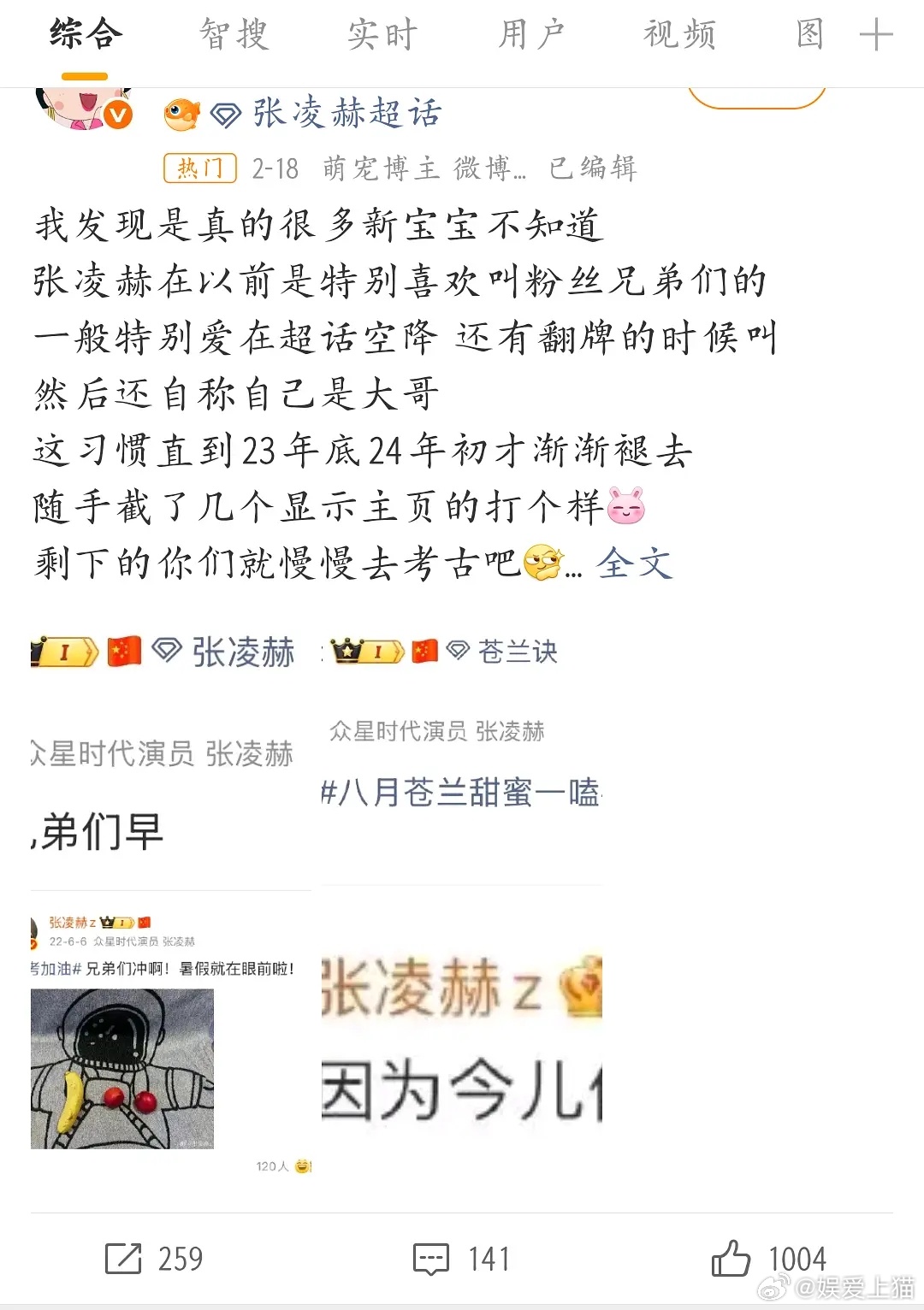“好标致的一张小脸,争取下次演他妈妈”刷到演员隋俊波老师在张凌赫合照下的留言