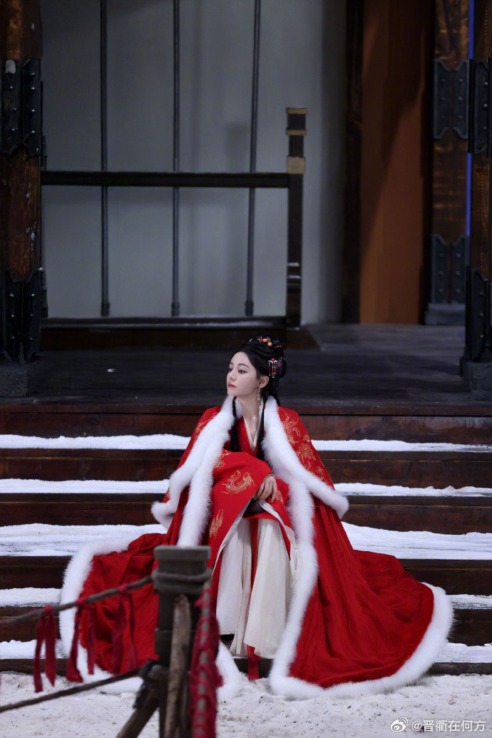 迪丽热巴古风造型氛围感雪落阶前,灯暖人间。红衣似火,蓝裙如溪。在时光里,把古风的温柔与凛冽都演成了诗。迪丽热巴 打卡衢州