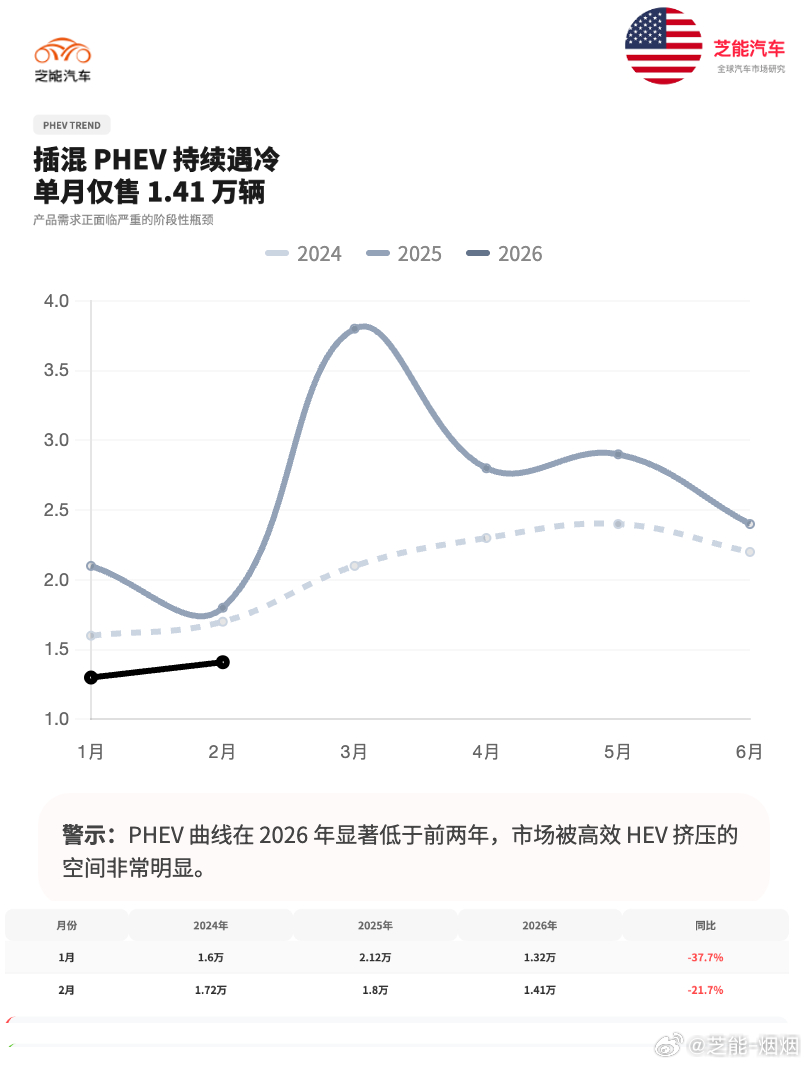 2 月美国新能源市场整体有点冷,和之前预判的节奏差不多。电动车渗透卡在一成左右涨不动,直接进入瓶颈调整阶段。
