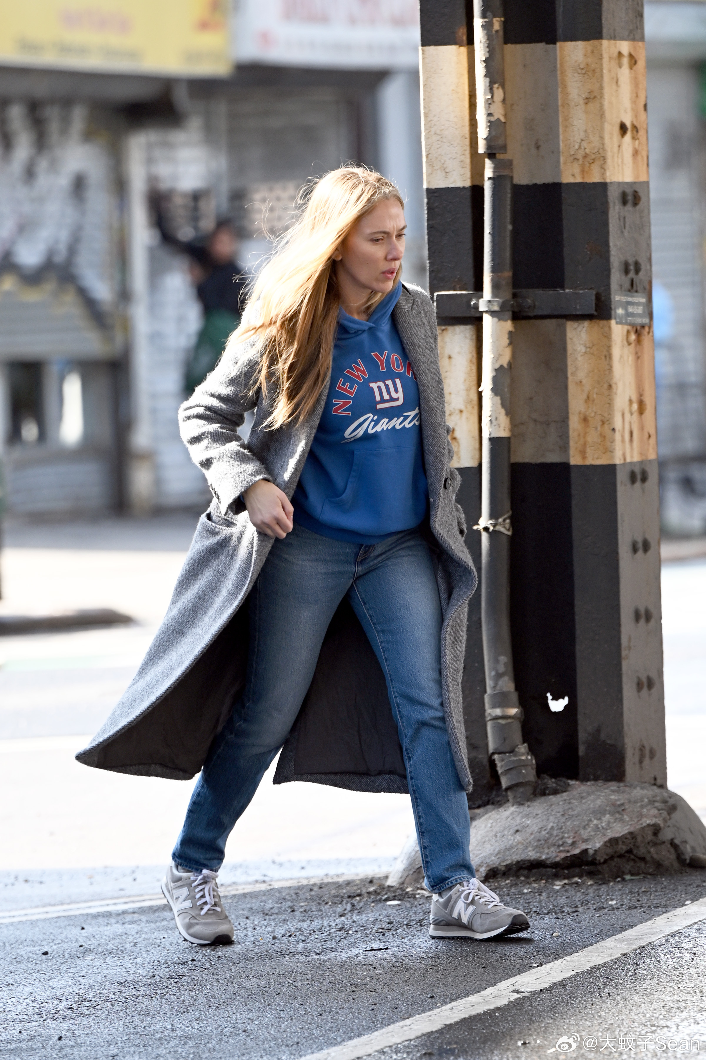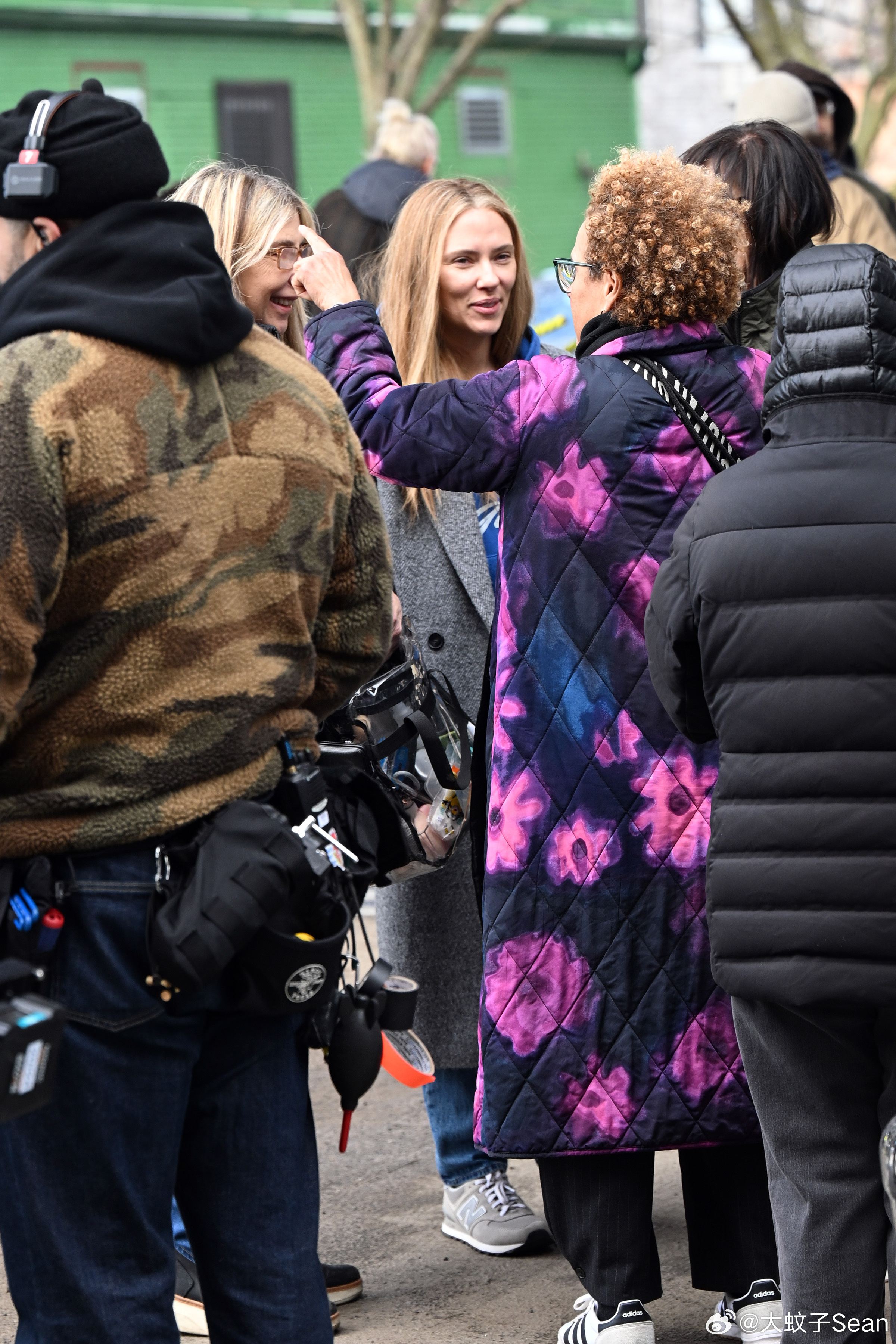 scarlett johansson斯嘉丽约翰逊继续在纽约为重启版《驱魔人》进行拍摄,被现场约200位临时演员饰演的抗议者包围