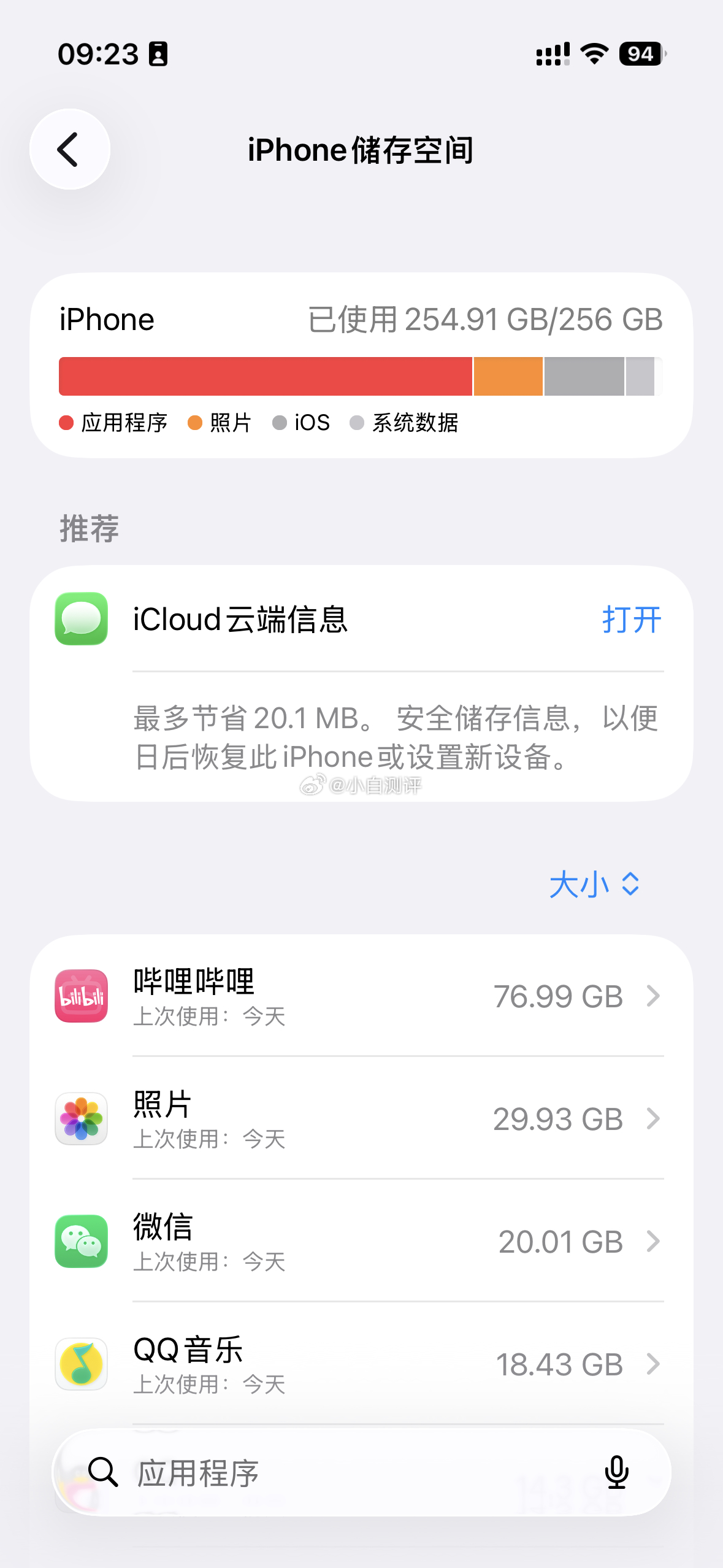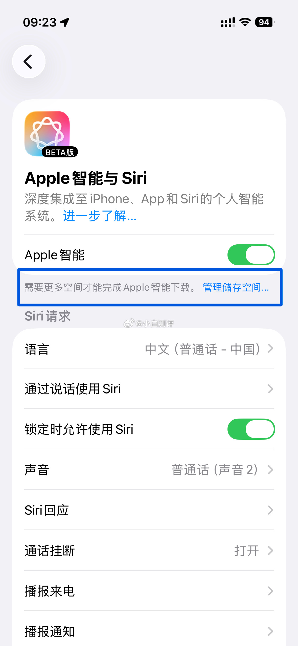 绷不住了,我们工作室收到苹果国行AI Beta版推送的小伙伴正准备下载使用,结果提示手机存储空间不足