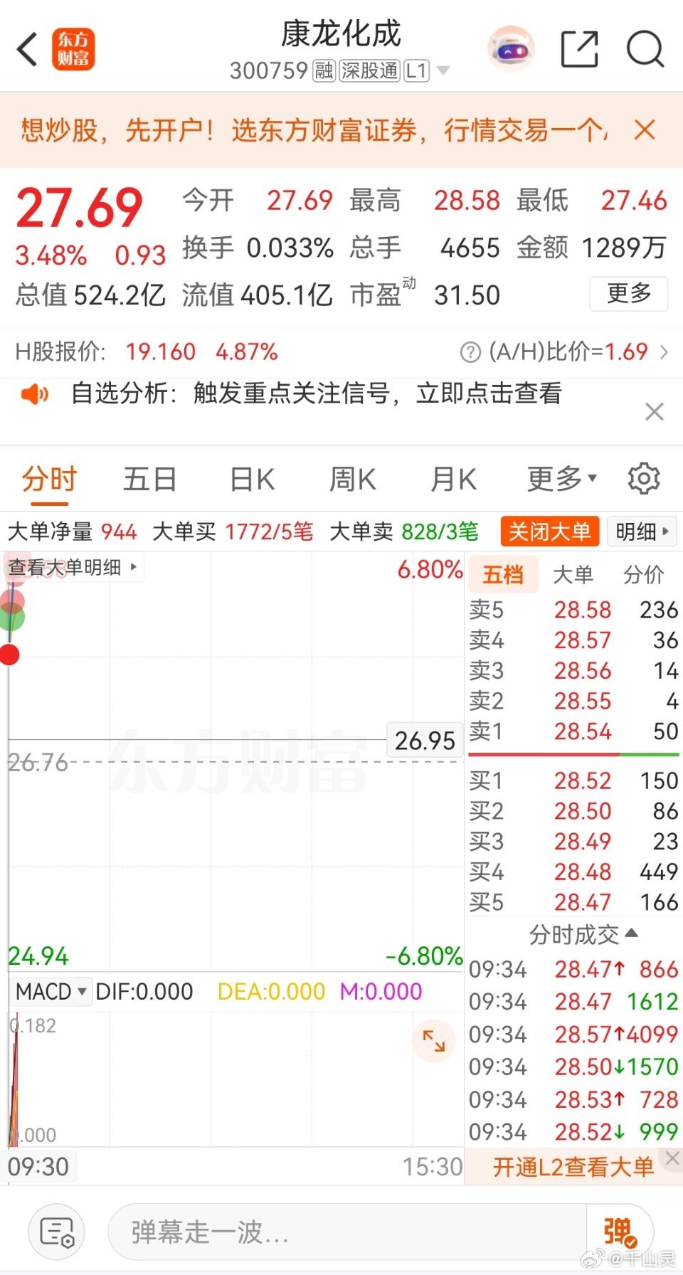 今日强势股分享$康龙化成 sz300759$ $塞力医疗 sh603716$