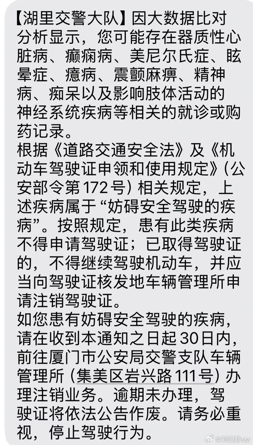 网友买安眠药后收到注销驾驶证短信 不少网友表示:过分!感觉隐私受到了侵害这又是一场关于公共和个人权利的讨论其实在我看来,发送到个人手机上,不涉及隐私问题同时这样的提醒也保证了公共的安全,毕竟你也不想路上的其他司机是药驾吧……服药不开车,对自己负责,对他人负责