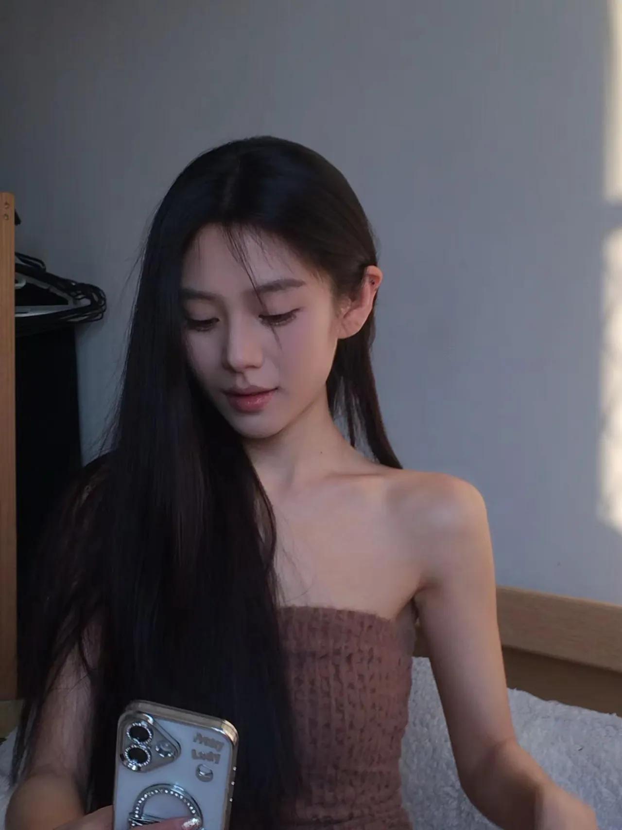 谁懂啊!原相机直出的阳光感自拍太绝了 家人们!午后的阳光真的是老天爷赏饭吃的滤镜✨ 暖光打在脸上、落在肩颈,连发丝都在发光, 不用P图、不用摆拍,随手拍都自带氛围感! 深棕抹胸+黑长直,慵懒又温柔, 低头看手机的松弛、抬眼的灵动、怼脸的原生感, 每一张都藏着不费力的高级感, 这才是女生最舒服的状态呀~ 生活的美好,就藏在这些被阳光包裹的细碎瞬间里。